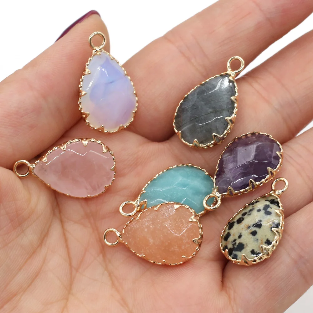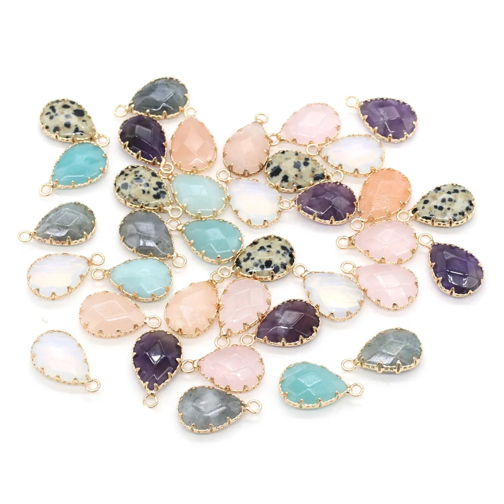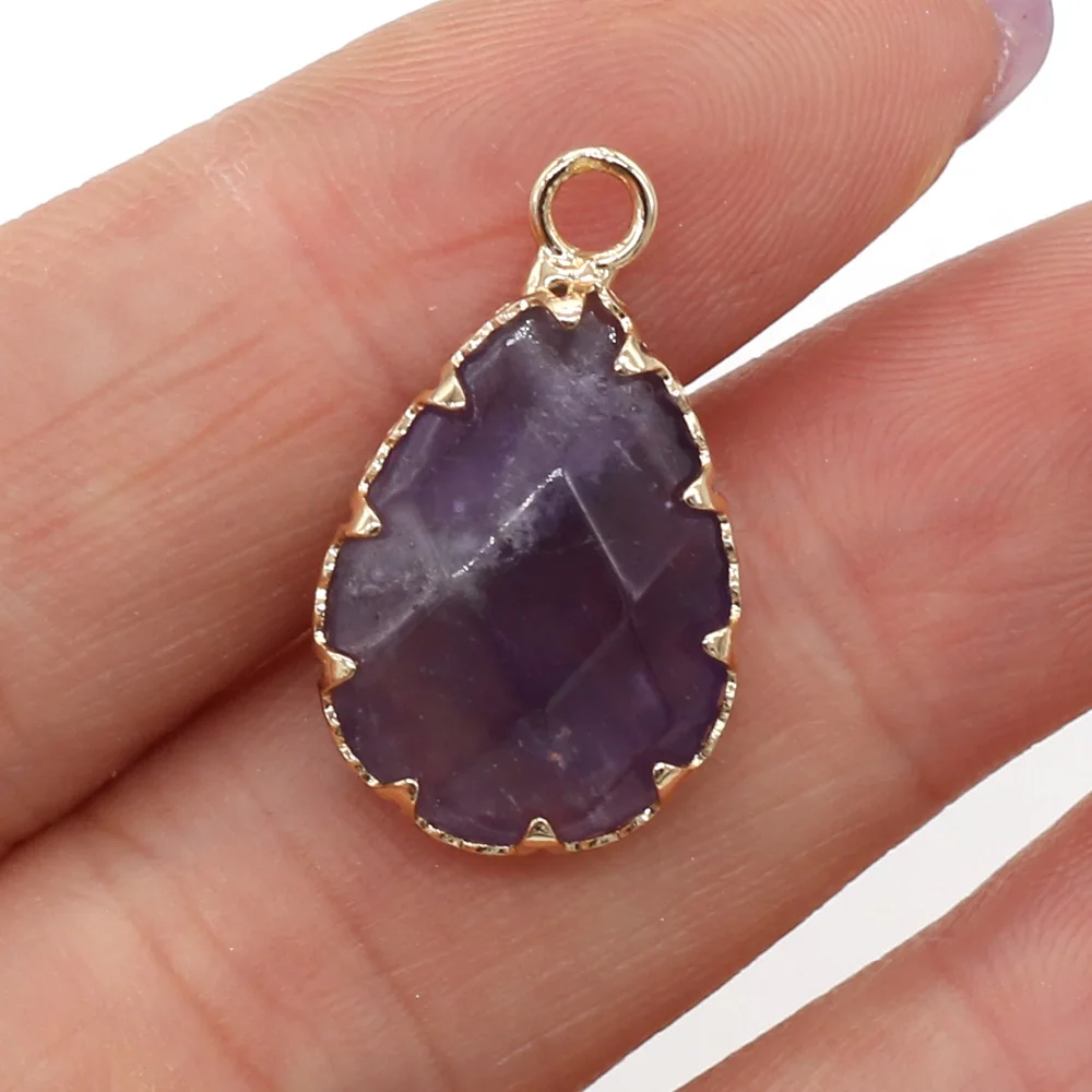Natural Stone Faceted Amethysts Pendants Water drop shape Charms for Jewelry Making Diy earring necklace accessories Size14x23mm
