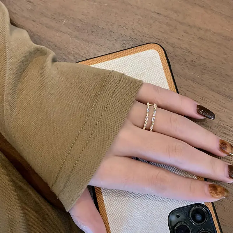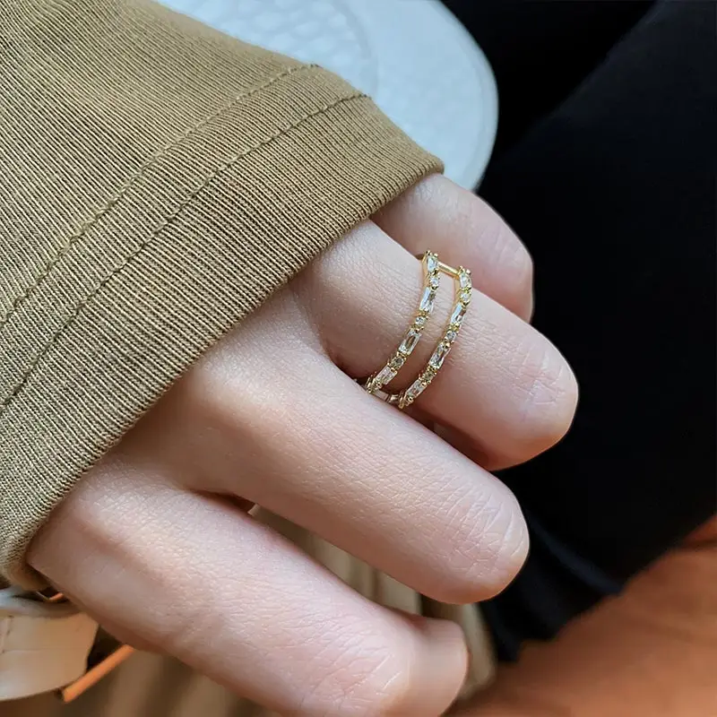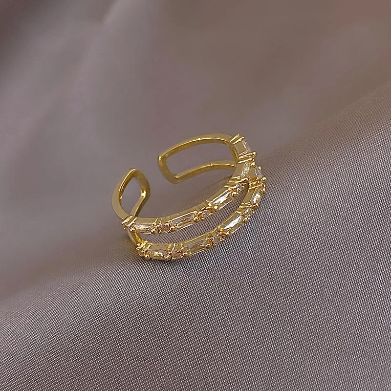 New Classic Zircon Gold Color Double Layer Open Rings For Womens South Korea Fashion Jewelry Gothic Party Girls' Luxury Ring Set