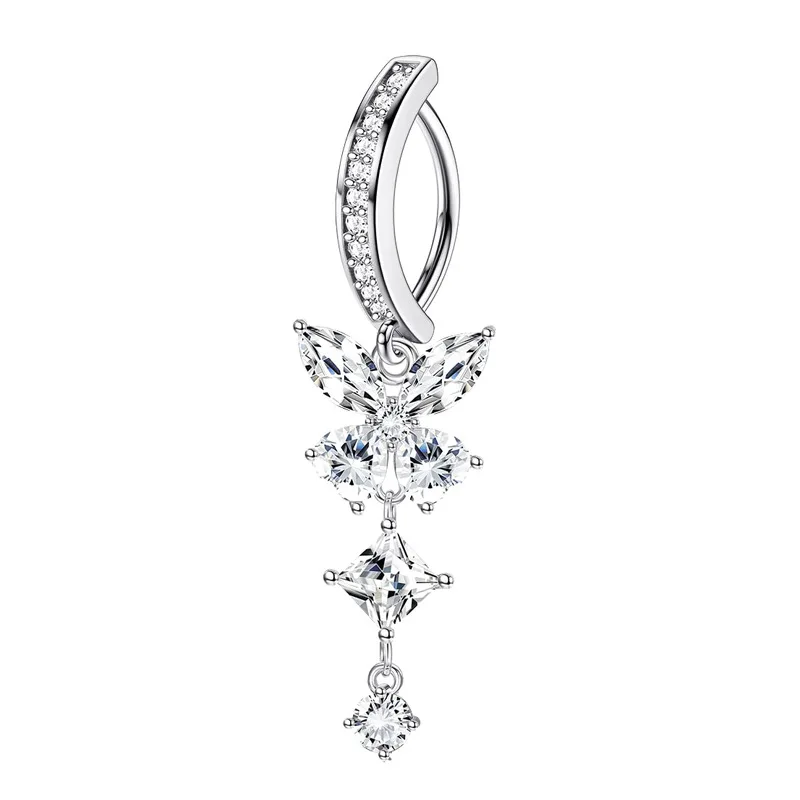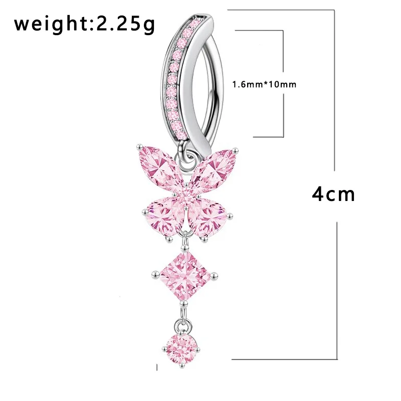 Pink Butterfly Belly Button Piercing Jewelry Women Cz Navel Barbell Fashion Crystal Reverse Curved Belly Rings Piercing Ombligo