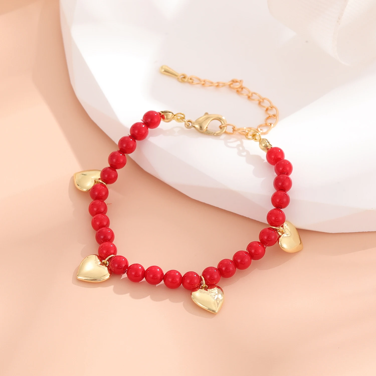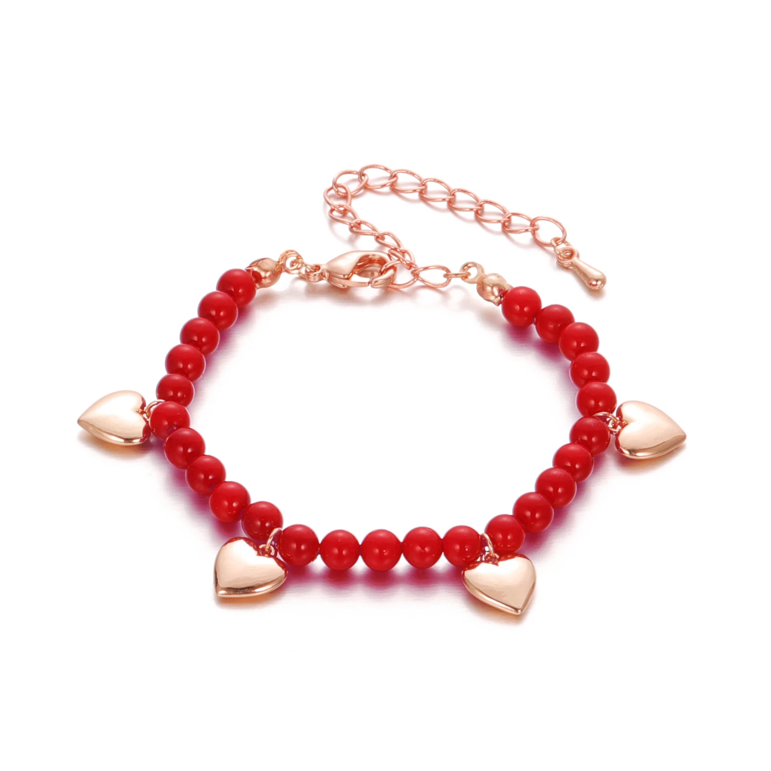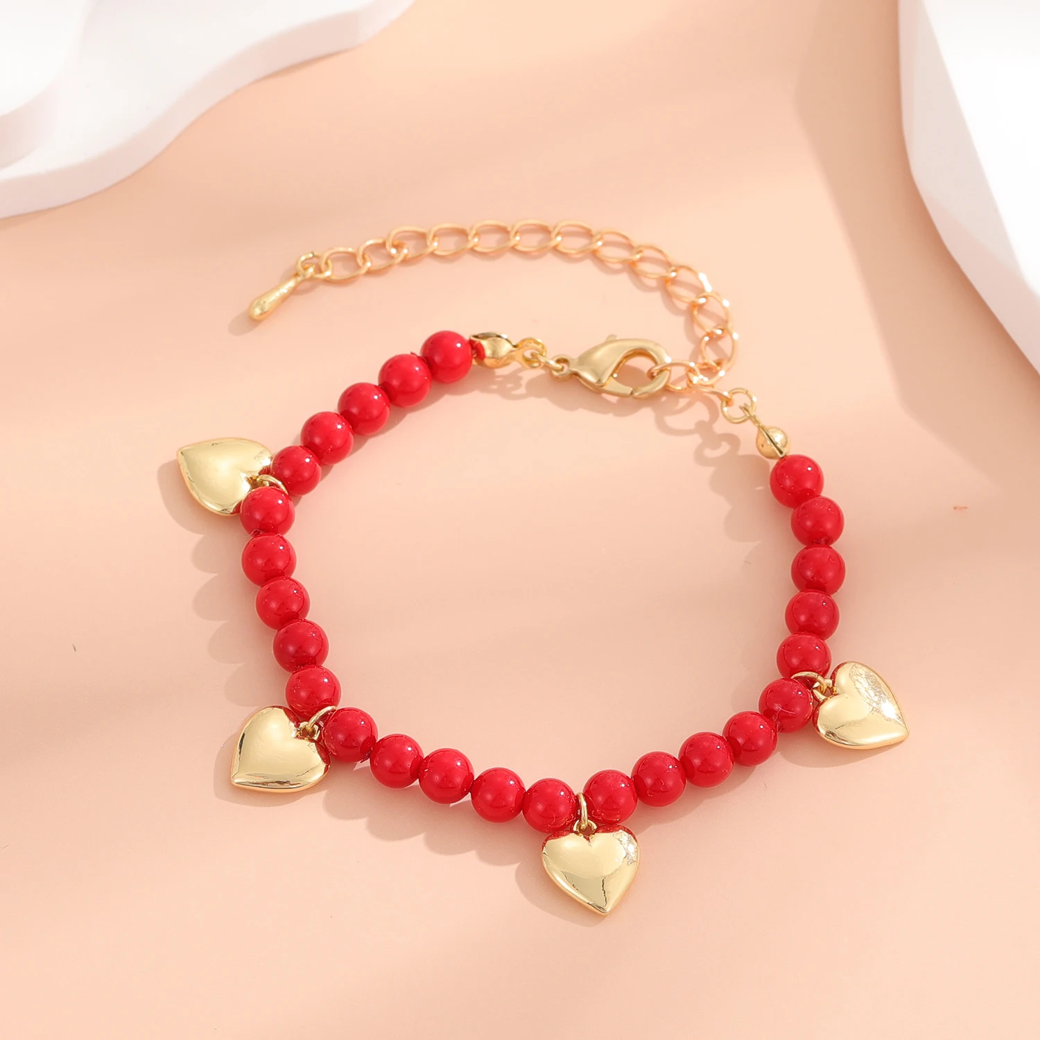 Red Pearl Chain Heart Charm Adjustable Bracelet Gift Fashion Jewelry for Little Girls Kids Toddler