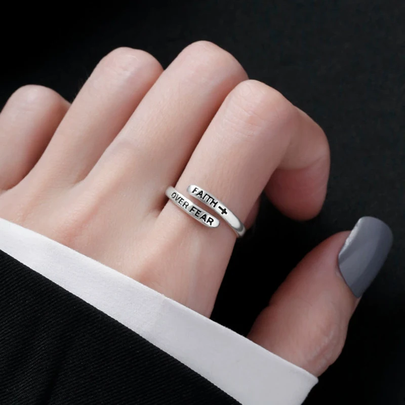 Religious Silver Color Cross Faith Over Fear Ring Adjustable Wrap Rings For Women Jewelry Gifts