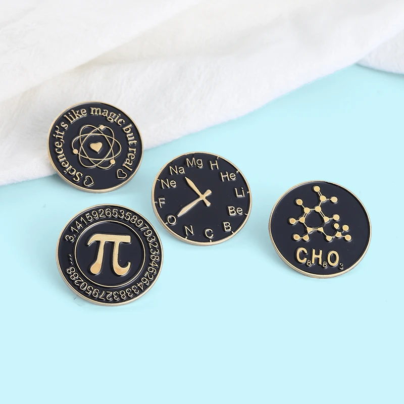 Science Enamel Pins Pi (π) Periodic Table Atom Symbol Brooches for Geek Science Lover Teachers and Students Jewelry Wholesale