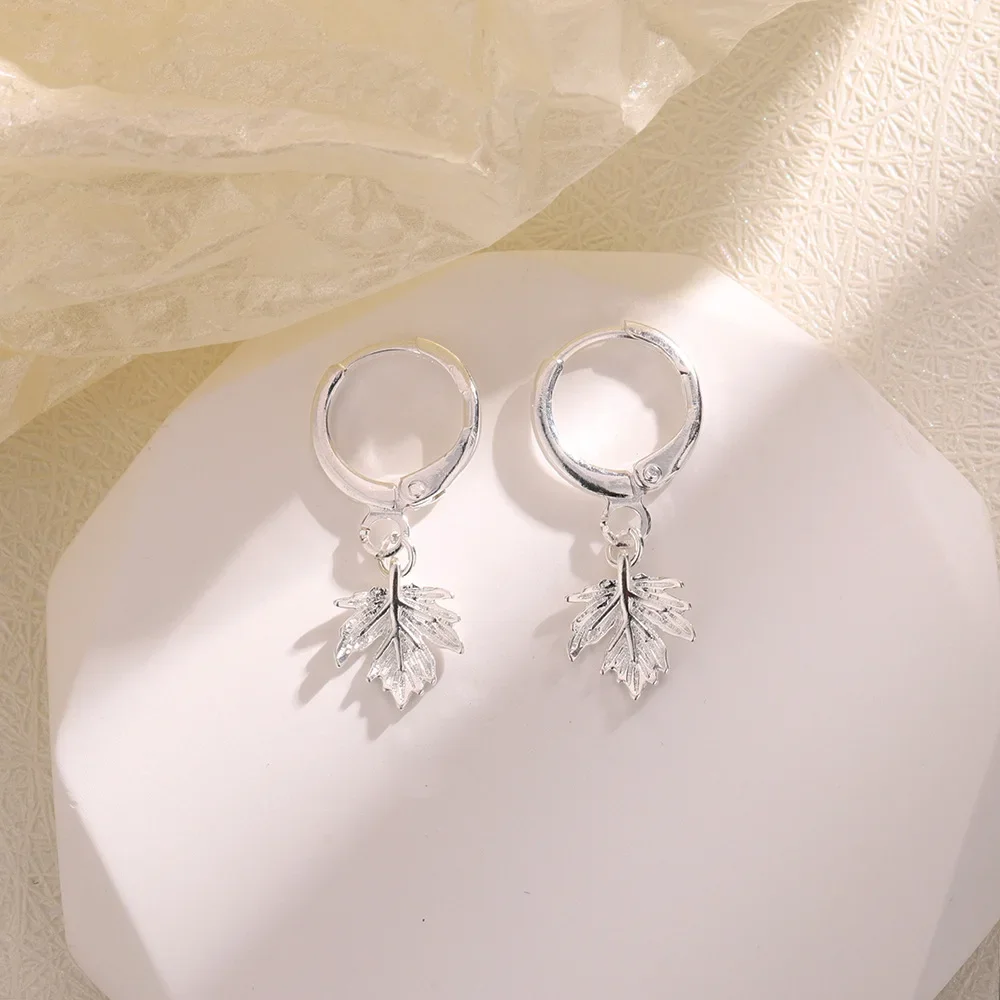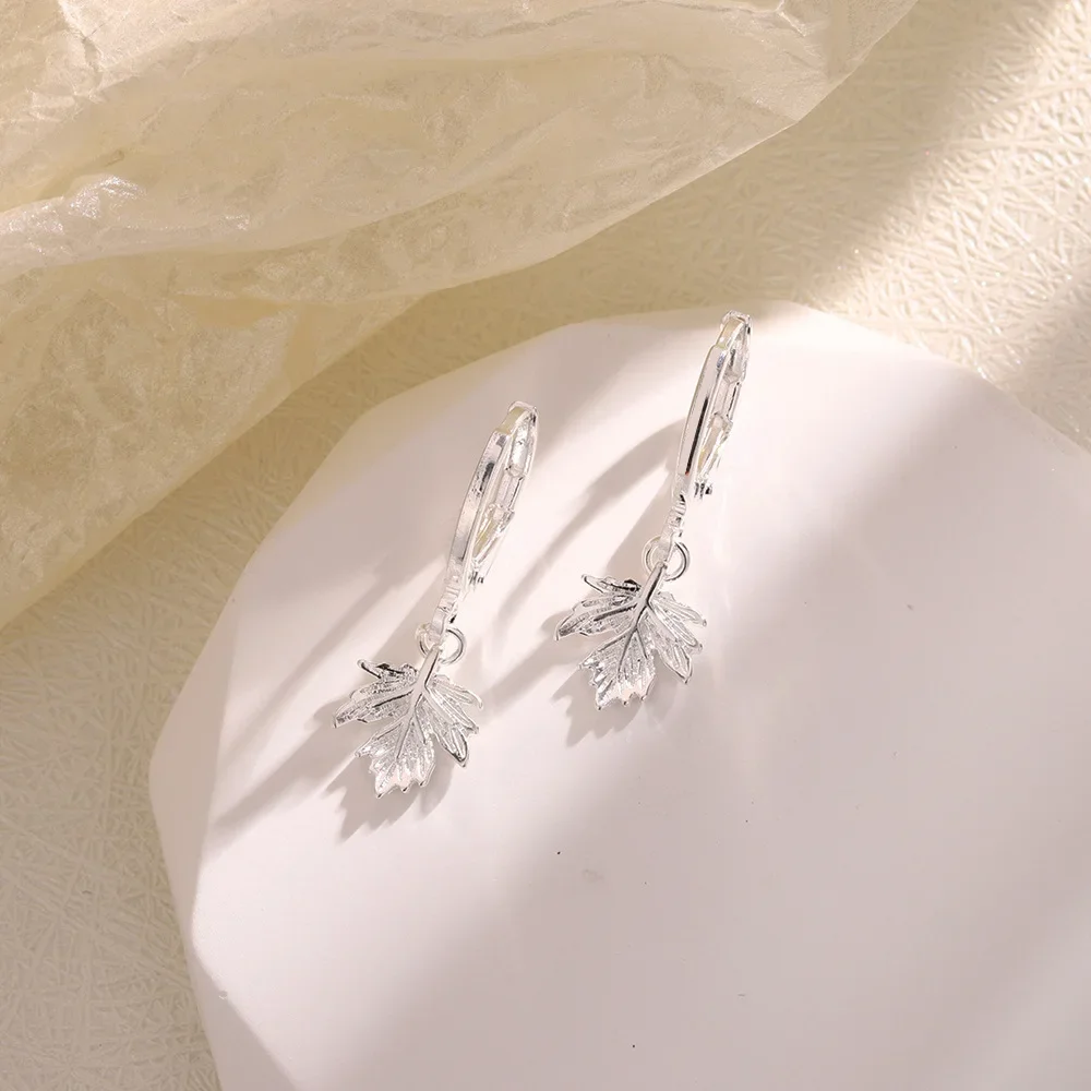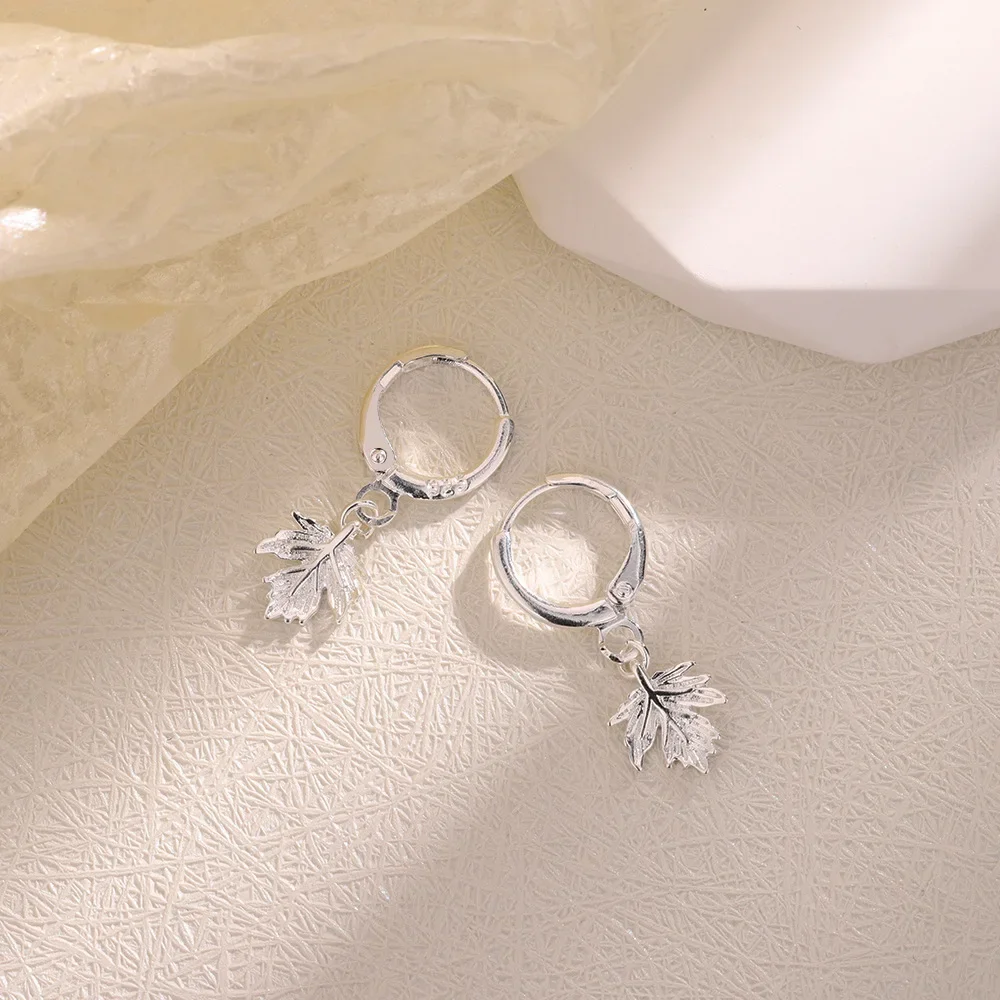 Silver Color Simple Sweet Maple Earrings for Women Elegant Stylish Leaf Earrings Party Birthday Jewelry Gift