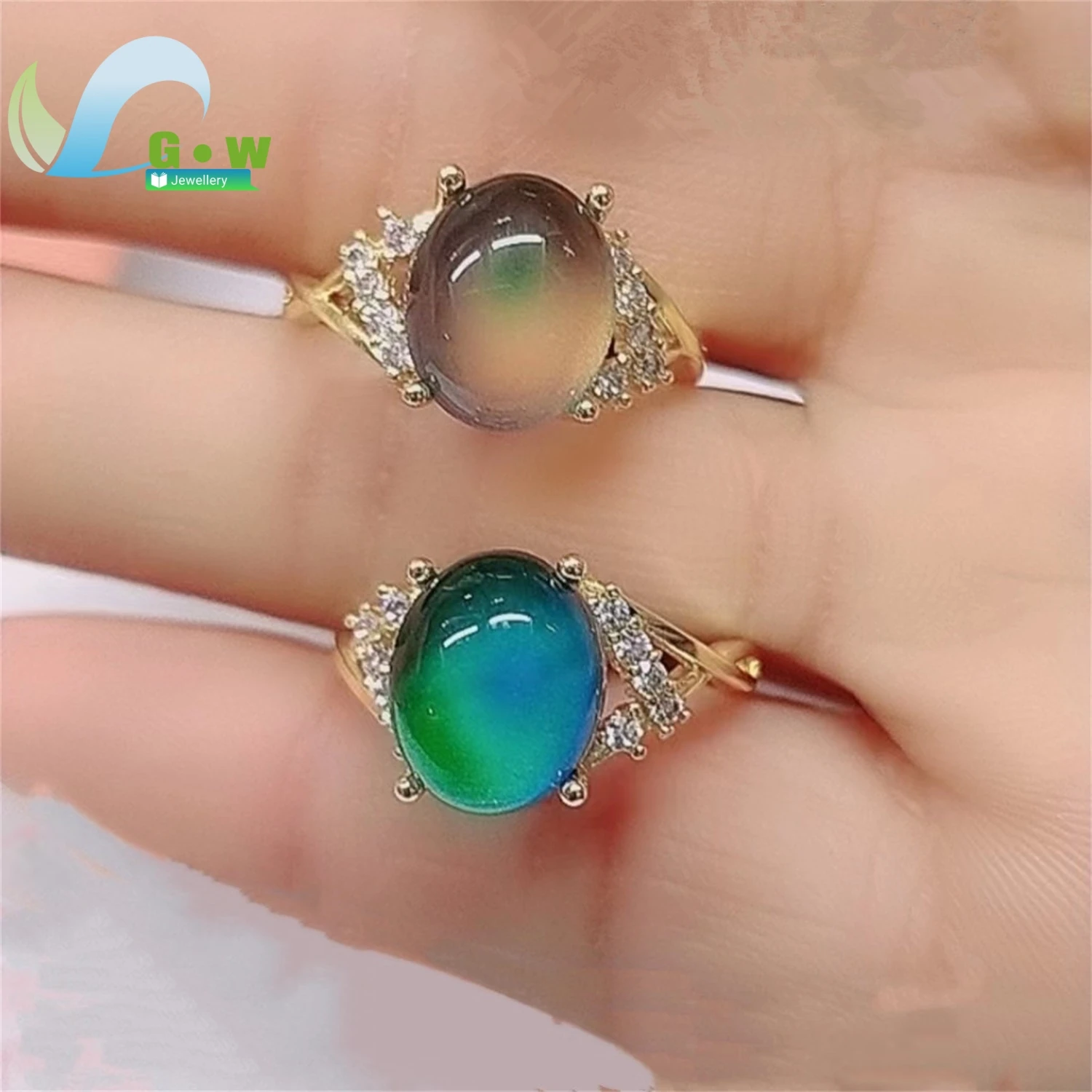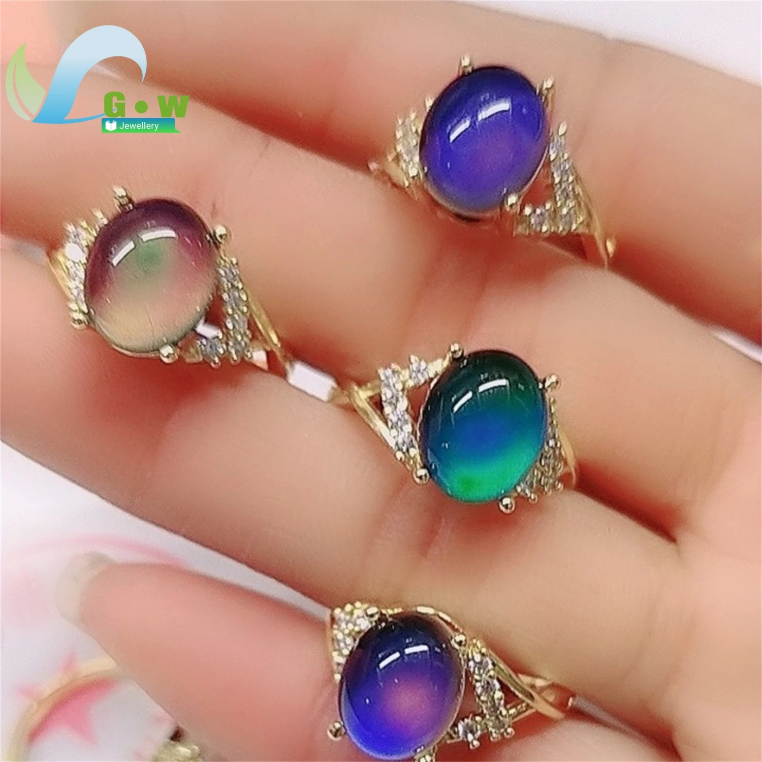 Simple Elegant Thermochromic Ring Open Gradient Color Shift Fashion Jewelry for Ladies Adjustable Size Delicate Stone Gift