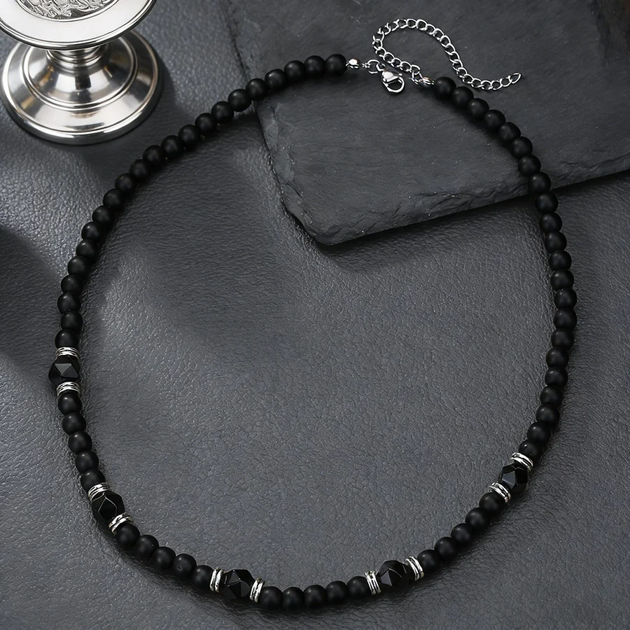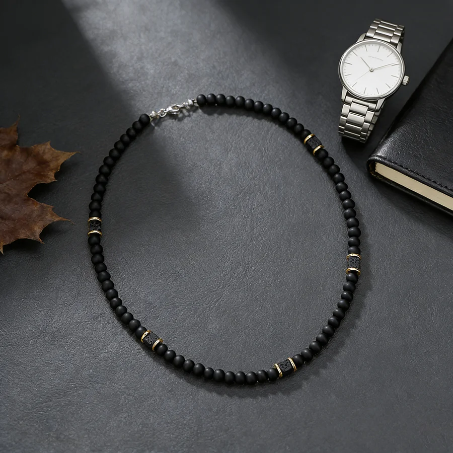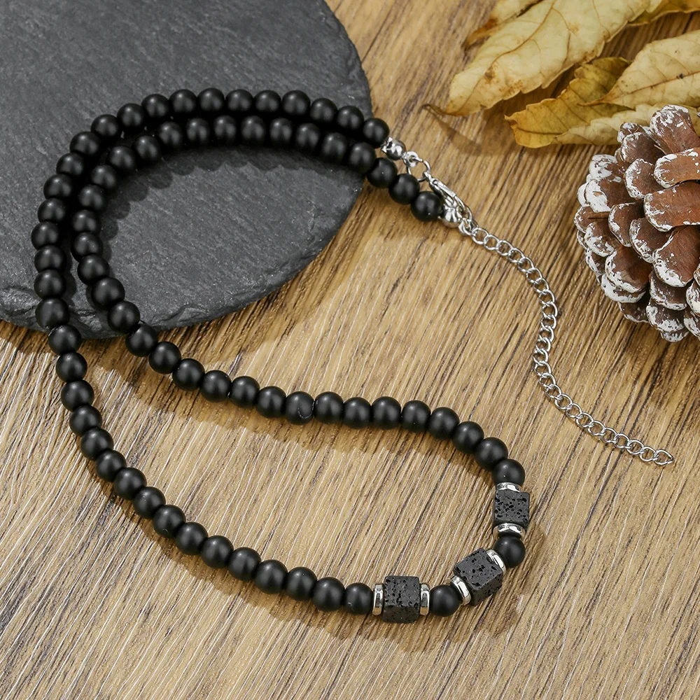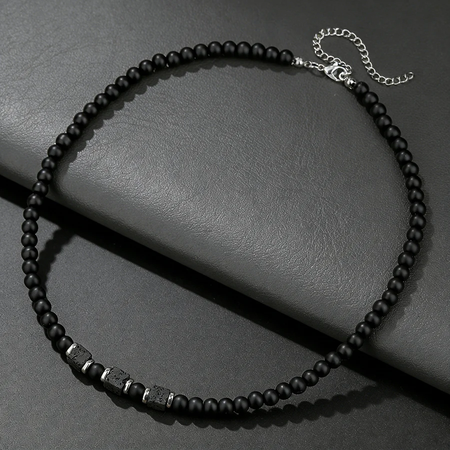 Stylish Cool 6mm Matte Stone Beads Men Necklalce 3 Styles Punk Short Collar Homme Jewelry Valentine Day Perfect Gift For Husband