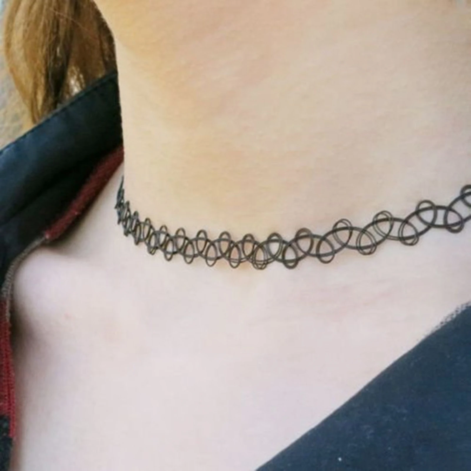 Tattoo Necklace 90s Vintage Retro Elastic Gothic Jewelry Hollow Women Jewelry Necklace Stretching Summer Style Necklace Anklet