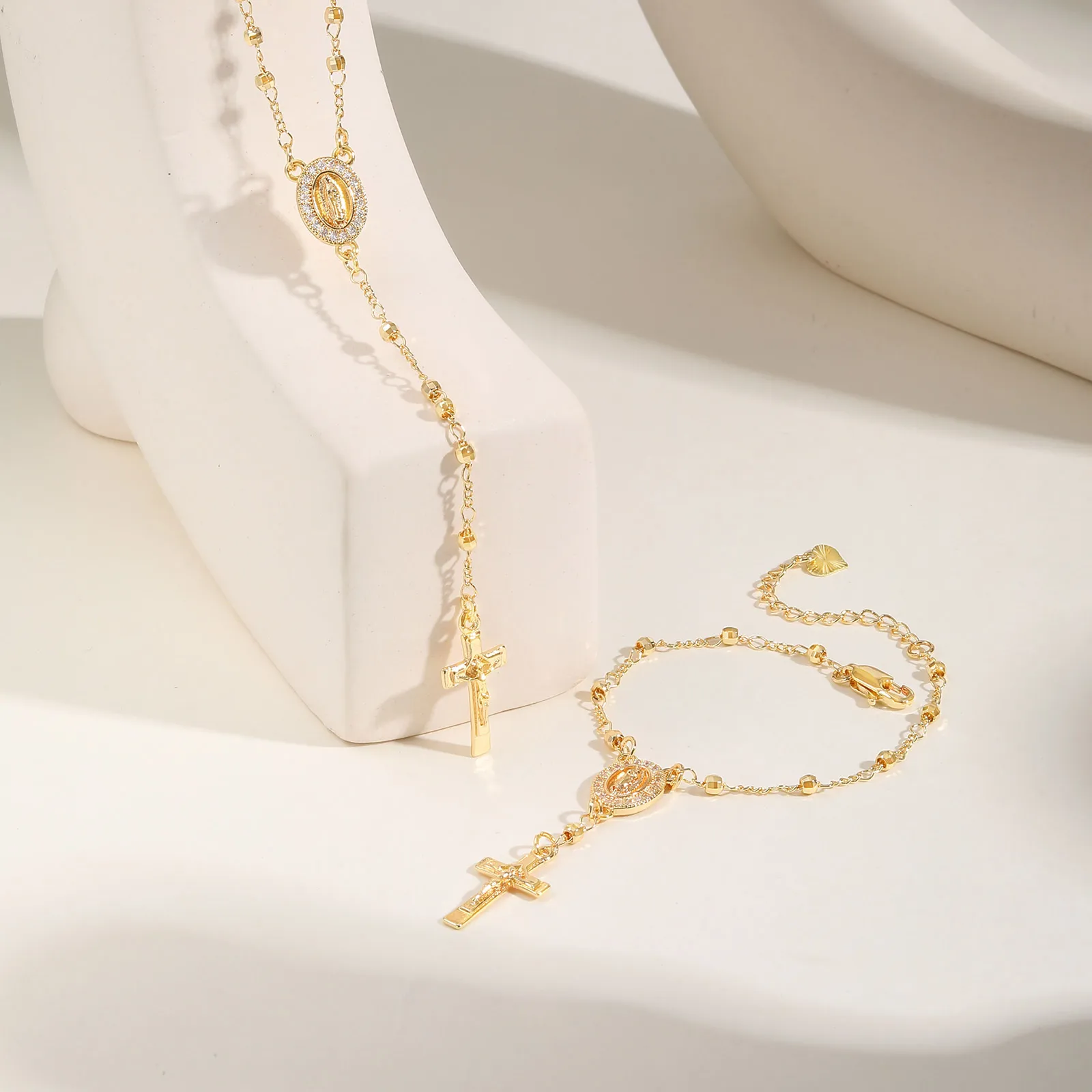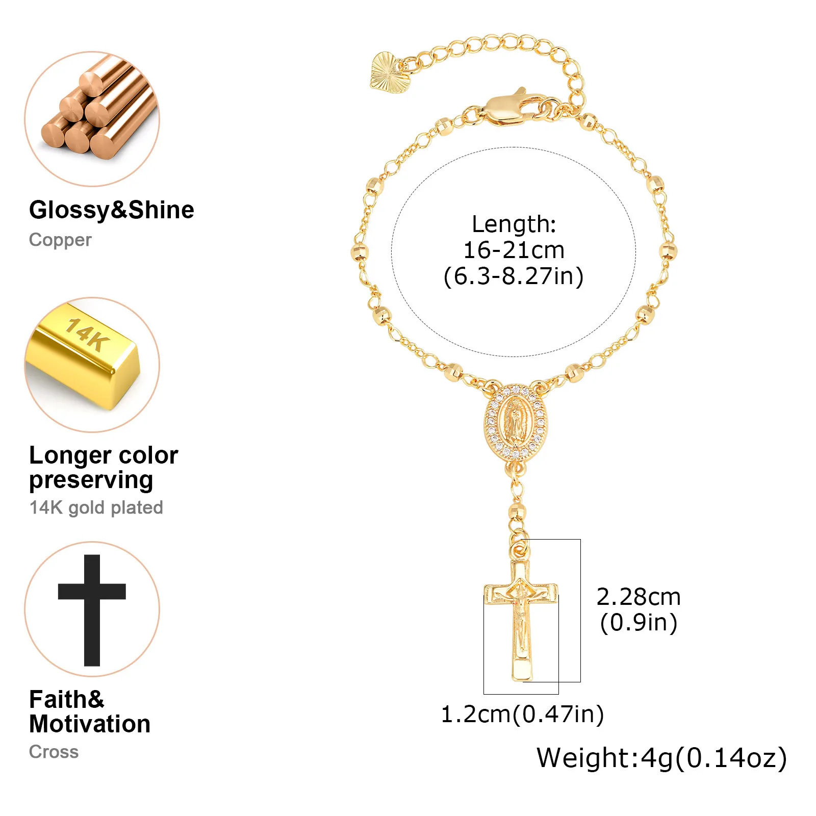 Vnox Virgin Mary Bracelets Necklaces For Women Men,Delicate Jesus Cross Pendent,Christian Catholic Hand Neck Jewelry Set Gifts