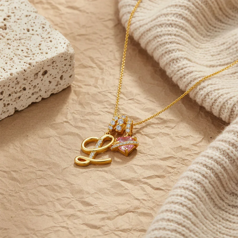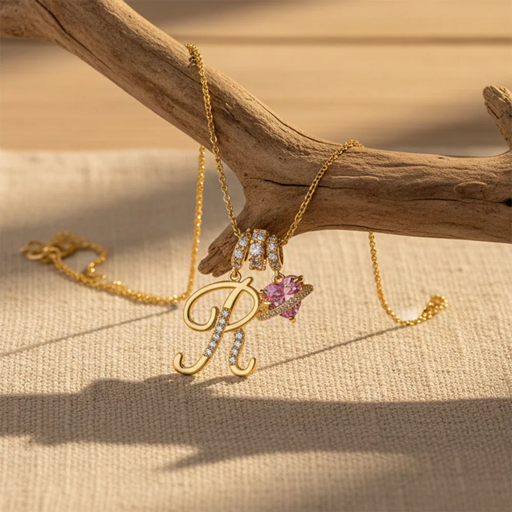 Women's Initial Heart Necklace with Customizable Name Art Design Letter Jewelry Gold Chain Set Adjustable Size Hypoallergenic