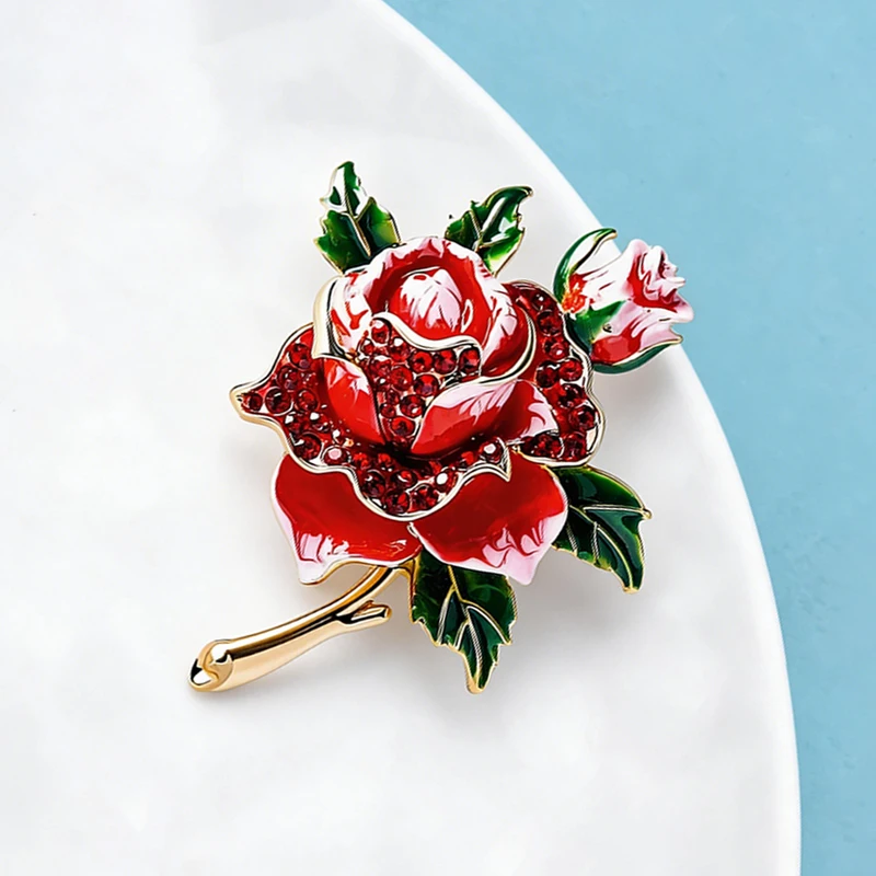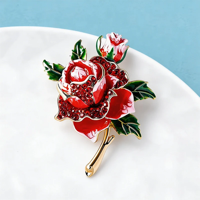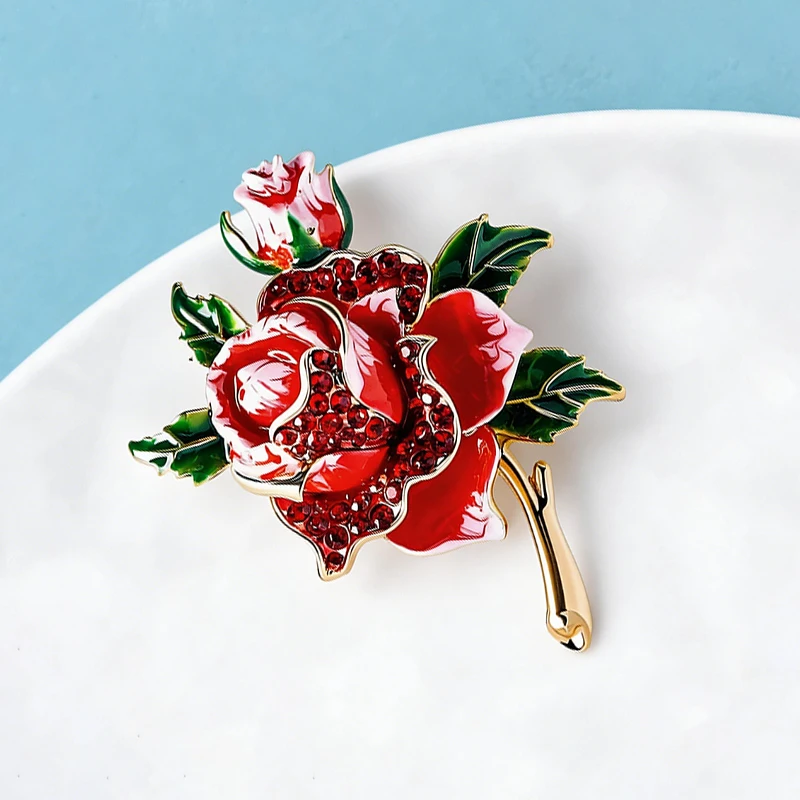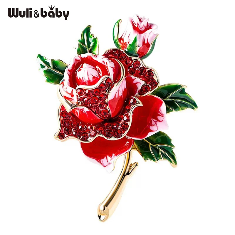 Wuli&baby Big Rose-flower Brooches For Women Unisex Retro Rhinestone Enamel Flowers Party Office Clothes Brooch Pins Gifts