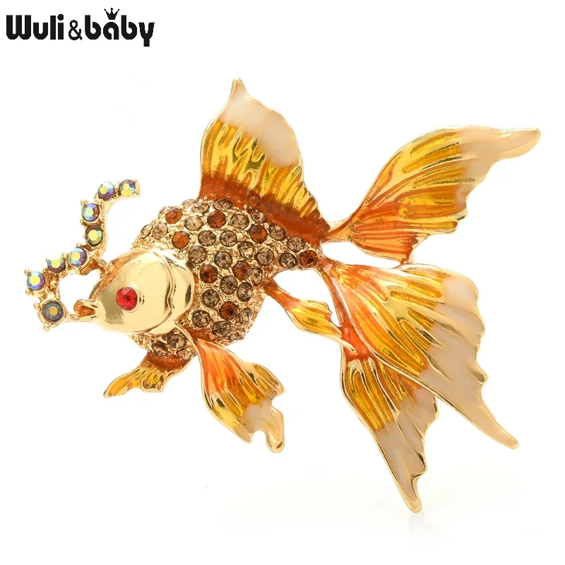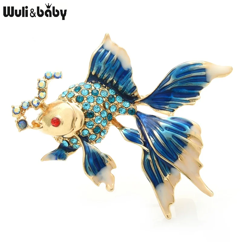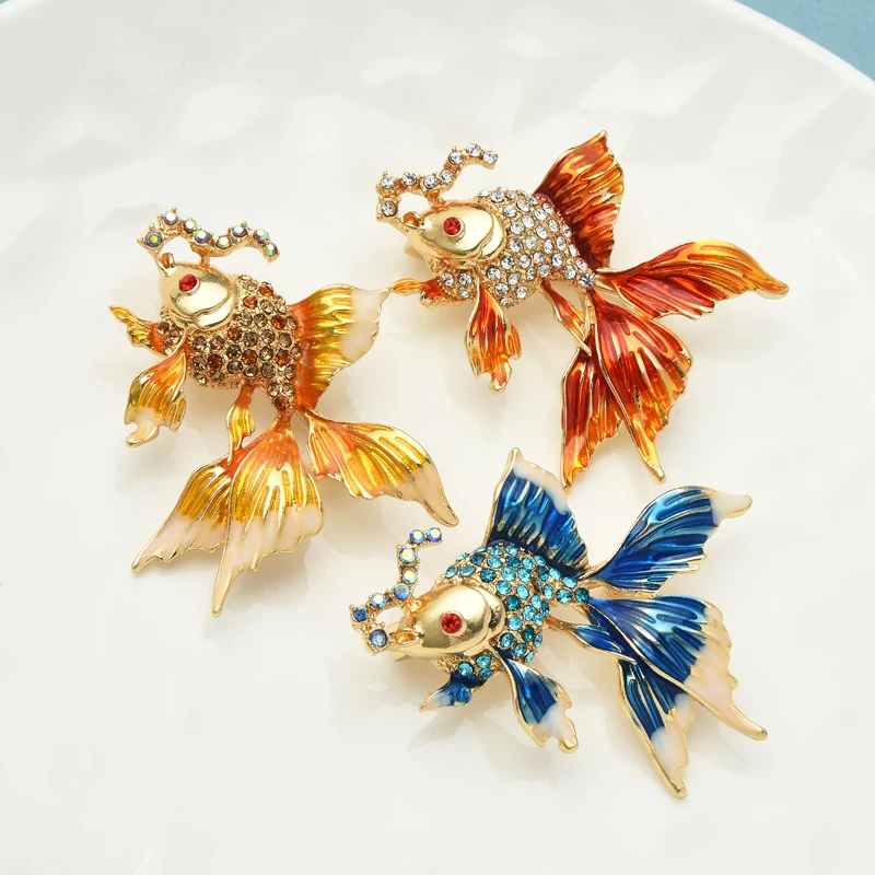 Wuli&baby Enamel Fish Brooches Women Unisex 3-color Rhinestone Sea Animal Party Office Brooch Pins Gifts