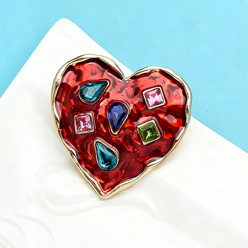 Wuli&baby Heart Brooches Women Unisex Rhinestone 2-color Red Heart Badge Brooch Pins Gifts