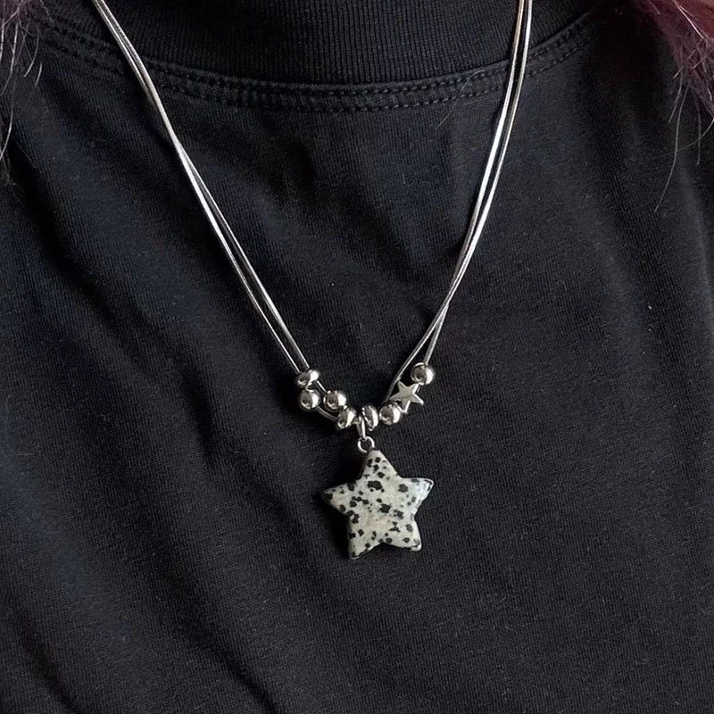 Y2K Jewelry Leopard Print Star Pendant Necklace for Women Vintage Cute Korean Fashion Geometric Necklace Accessories Punk Goth
