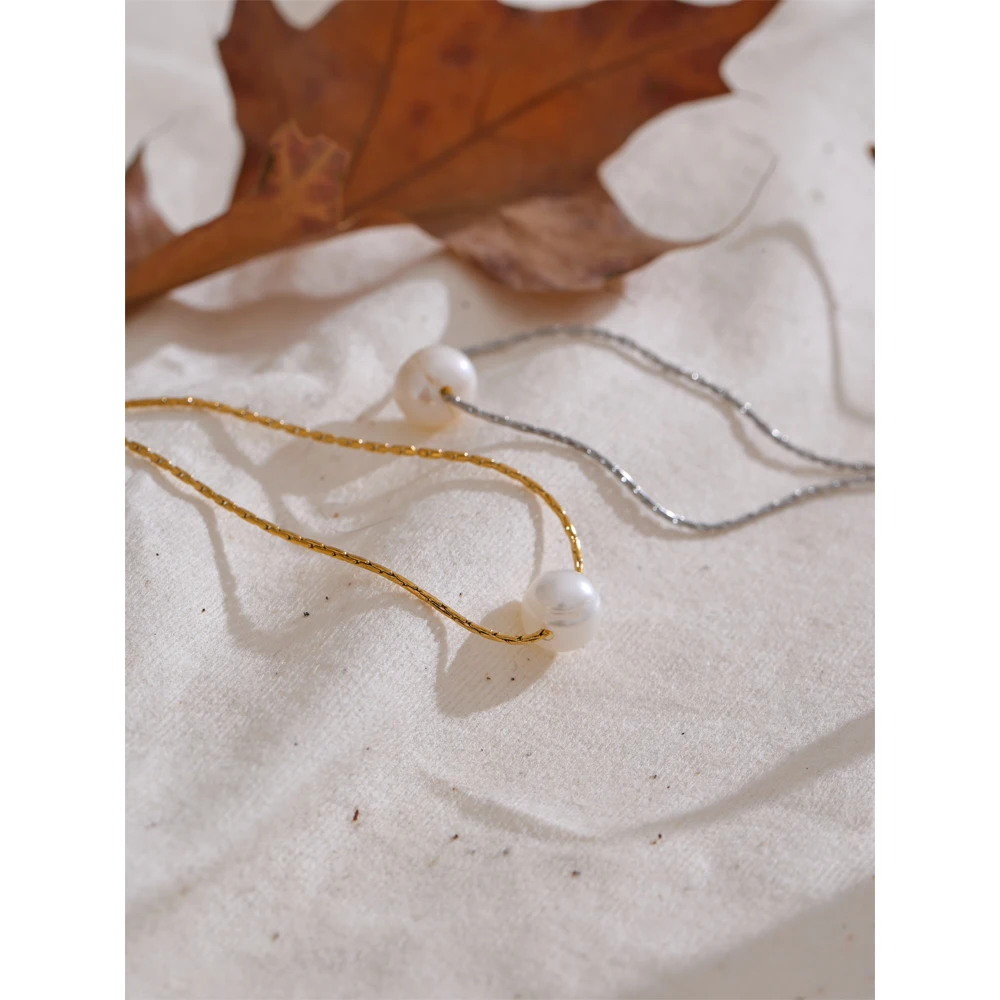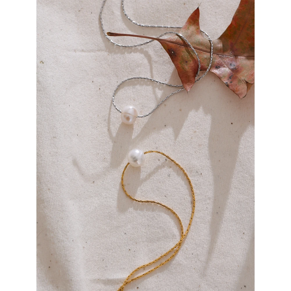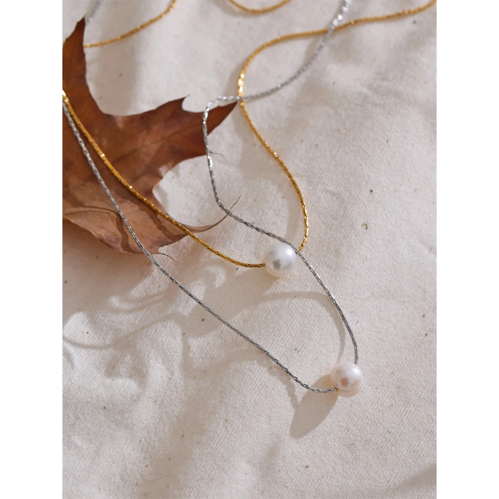 Yhpup 2 Style Daily Basic Natural Freshwater Pearl Round Oval Pendant Necklace Ladies Stainless Steel Chic Jewelry High Quality