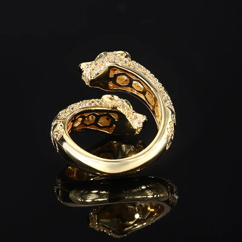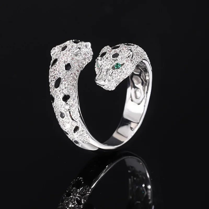 2024 New Jewelry European and American Retro Leopard Ring Fashion Personality Diamond S925 Silver Plated 18K Gold
