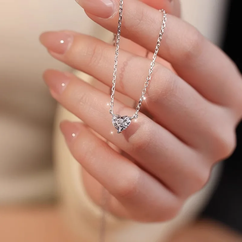 925 silver 1 carat love heart moissanite simple fashion temperament complex color men and women couple pendant necklace