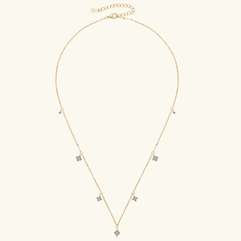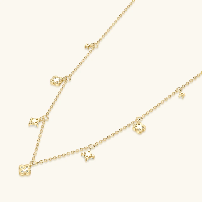 Anziw 3mm D Moissanite Jewelry Set Clover Flower Pendant Necklace Earrings Bracelet 3 in 1 Sets for Women 925 Silver Charm Gifts