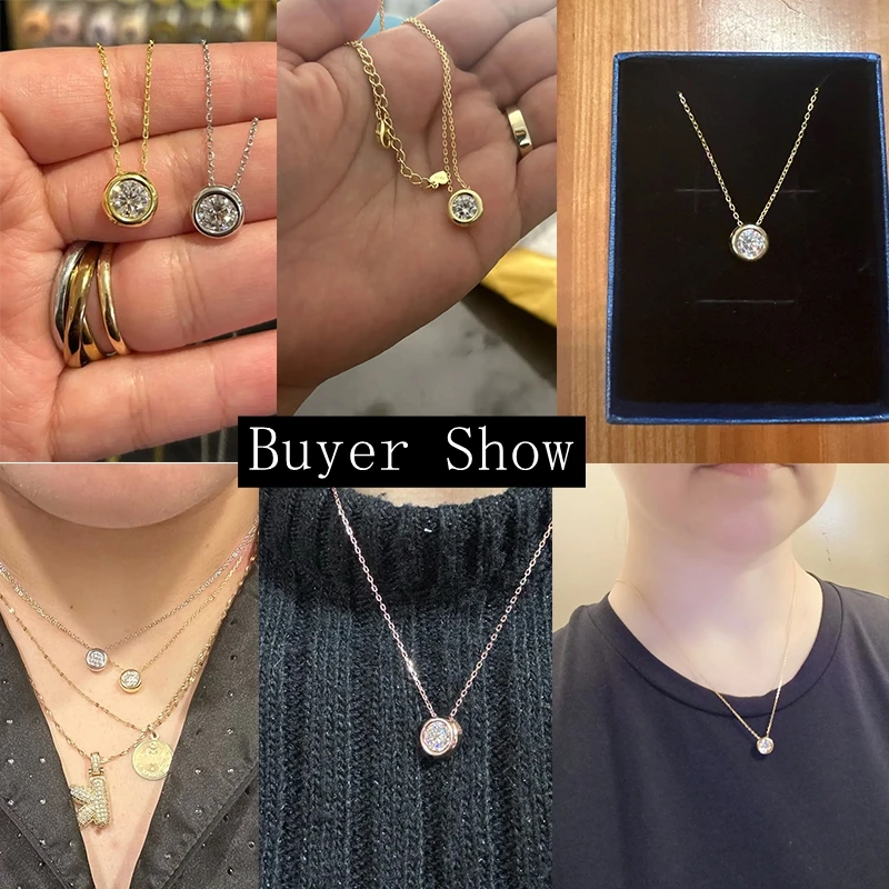 Lnngy 6.5mm Round Bezel Moissanite Pendant Necklace For Women 925 Sterling Silver Clavicle Chain Necklaces Jewelry Collare Mujer