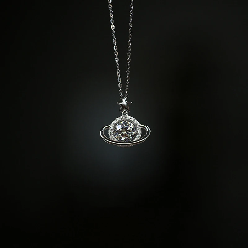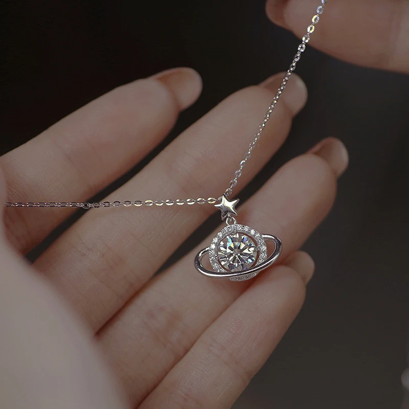 New 925 Sterling Silver Planet Necklace Personality Charming Woman Pendant Choker Birthday Gift for Friends Exquisite Jewelry