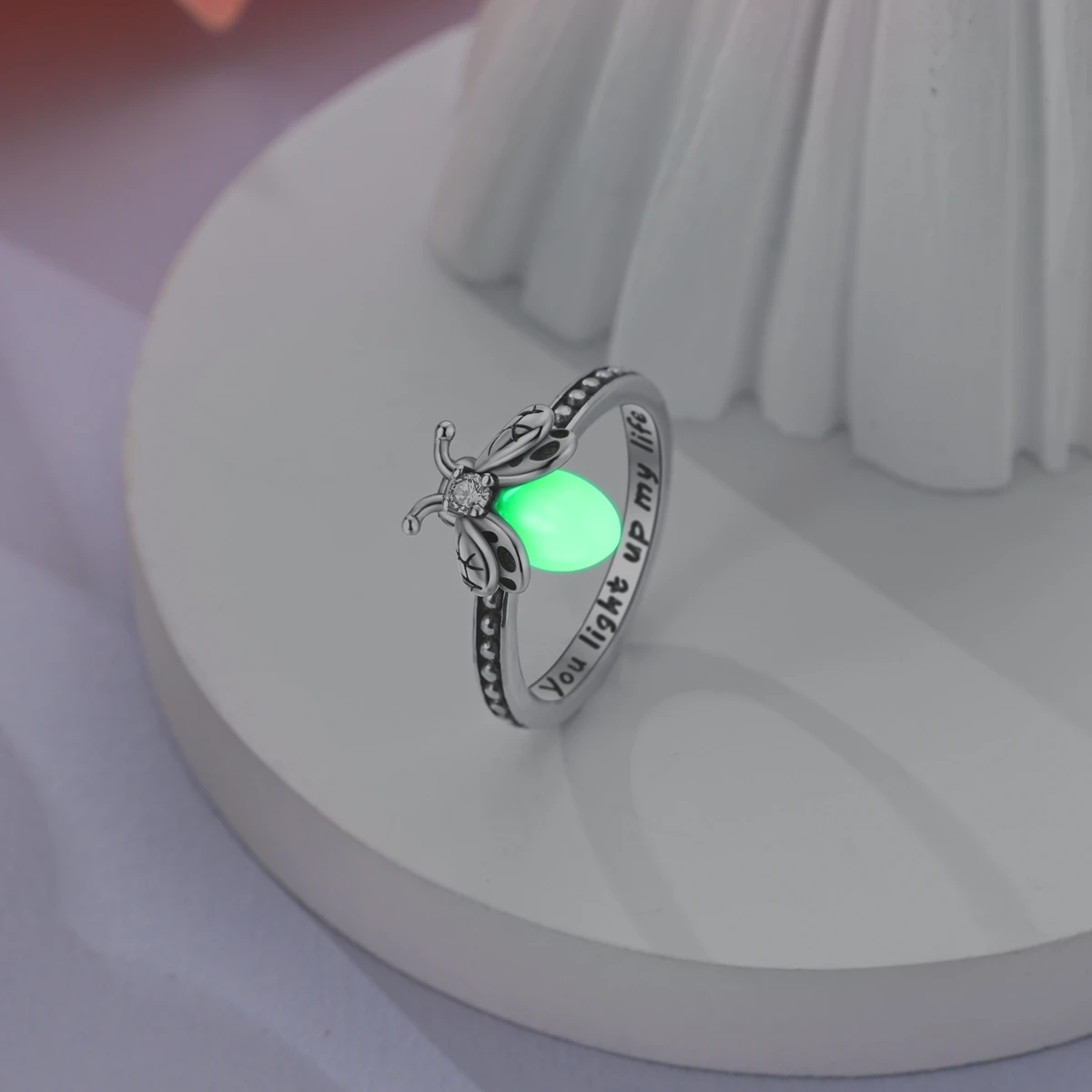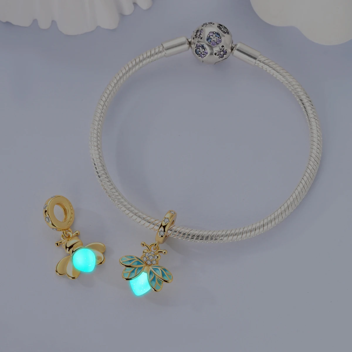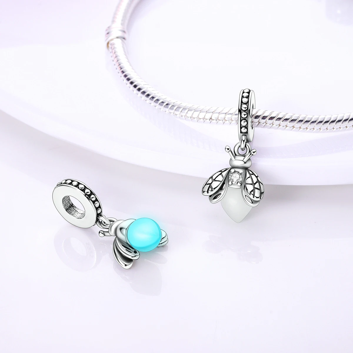 Original 925 Silver Luminous Firefly Charm Earring Ring Necklace Jewelry Set For Woman Fit Jewelry Diy