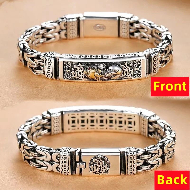 Vintage 100% Solid S925 Silver Retro Lucky Pixiu Man Bracelet Thick Style Domineering Trend Personality Jewelry