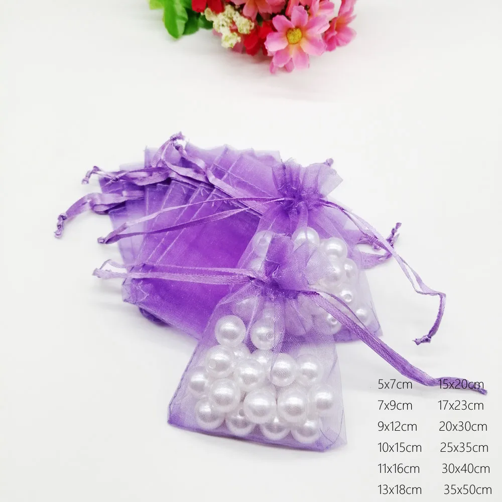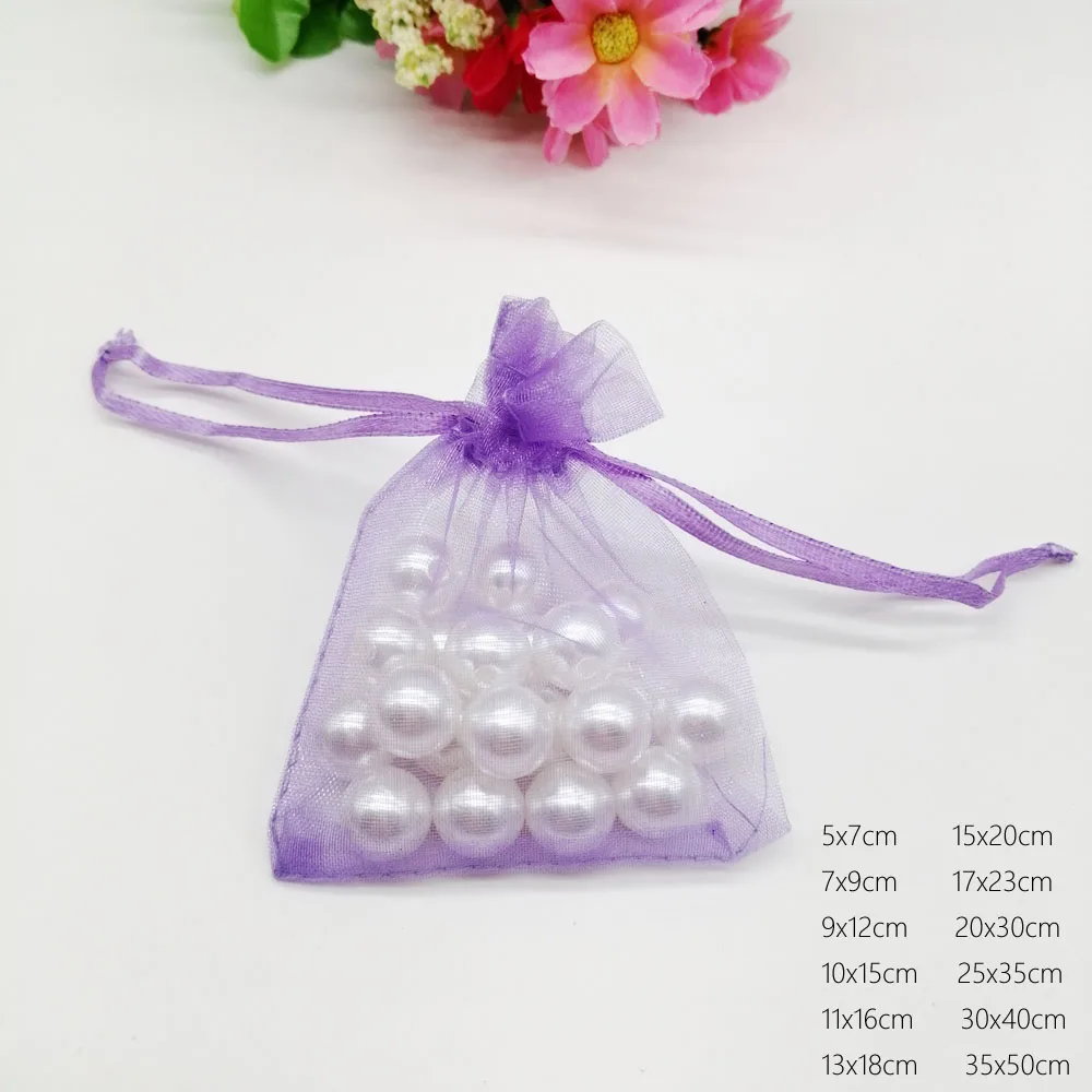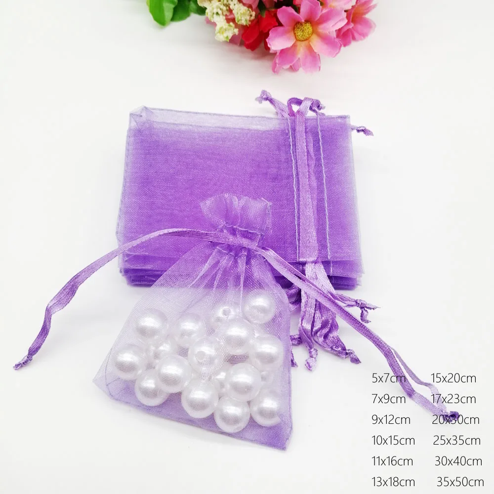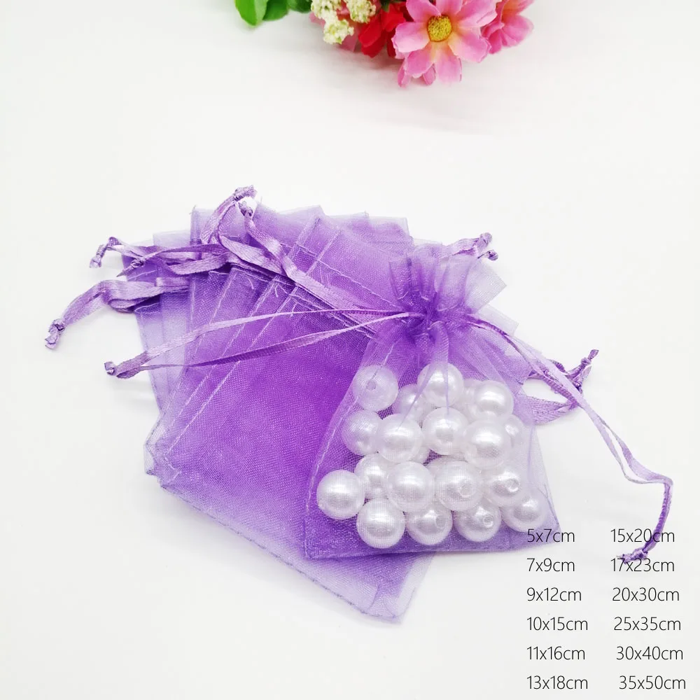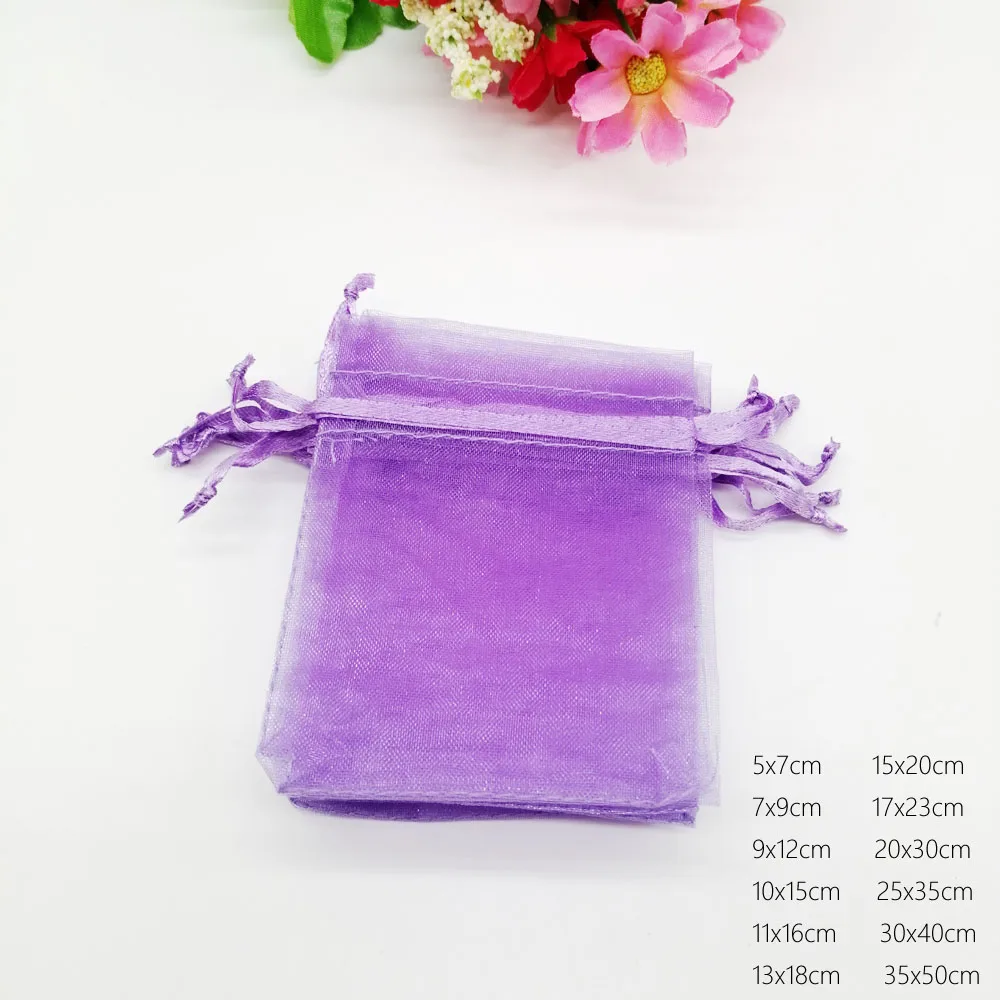 1000pcs Luxury Light Purple Organza Drawstring Gift Bags Wedding Party Favors Christmas Sachet Pouch Packaging Jewelry Displays
