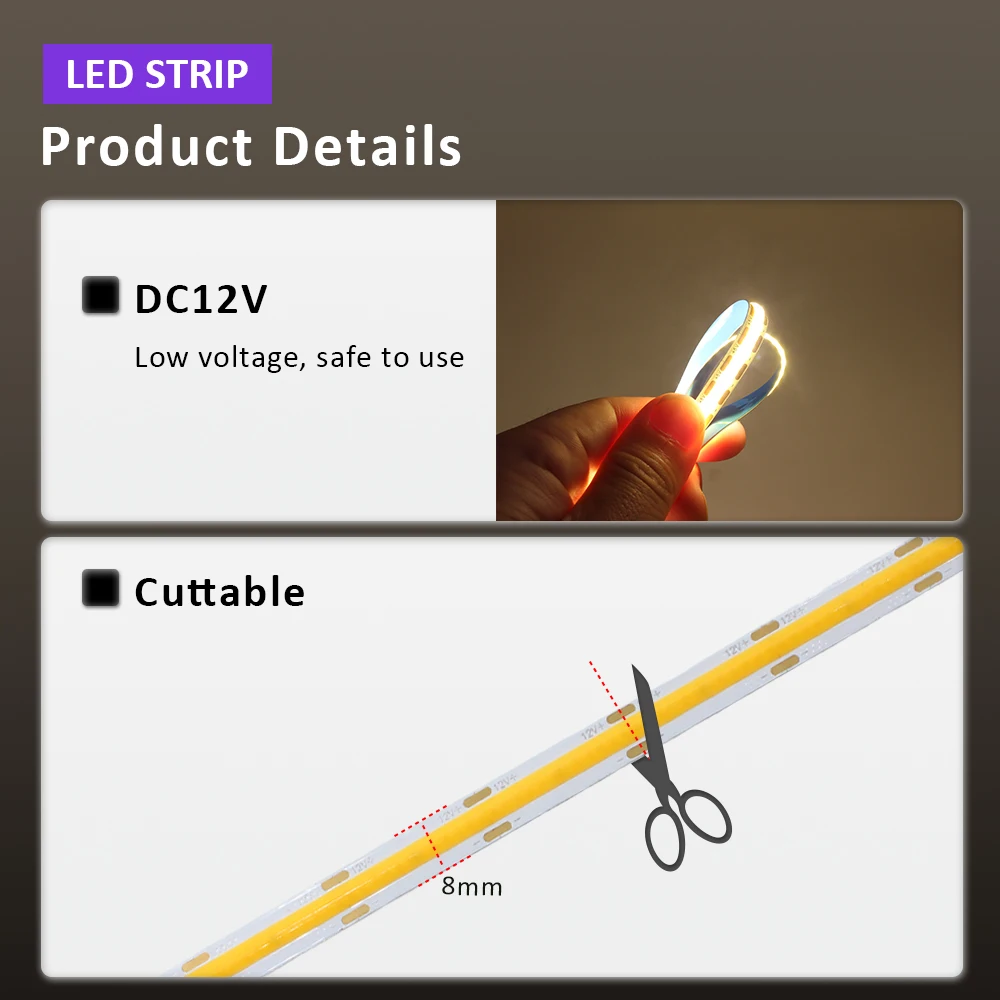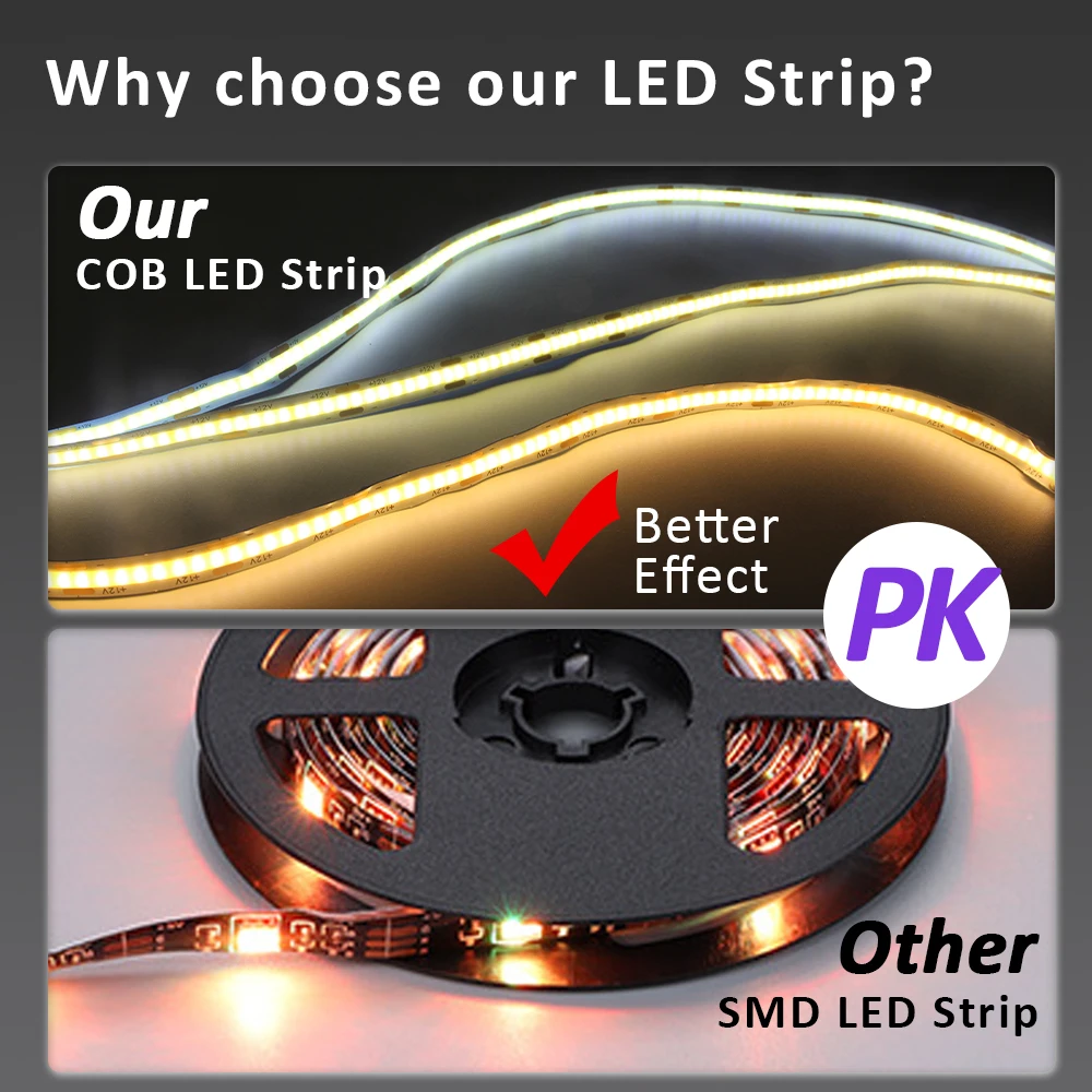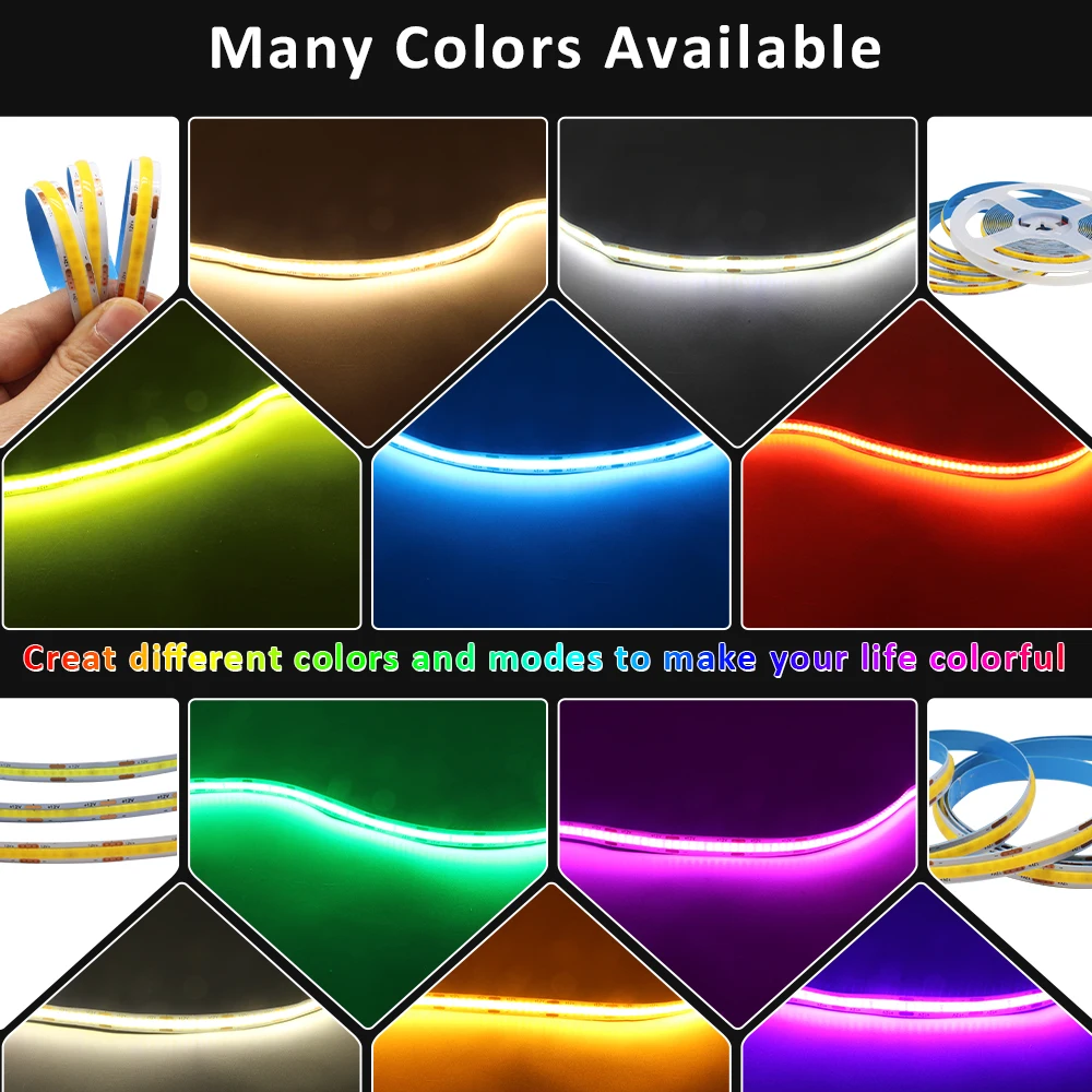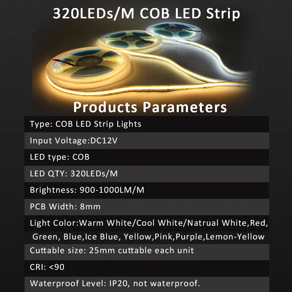 5M COB LED Strip Lights 12V DC 320LEDs/m High Density Flexible Ribbon Warm Cool Natural White Colorful Tape Lighting Room Decor