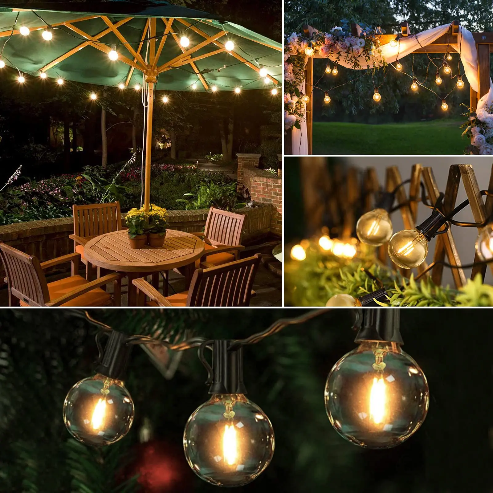 GANRILAND 65FT Outdoor Garland String Lights Dimmable E12 Sockets G40 Globe Led Bulb Connectable Gard Decor Fairy Light Chain