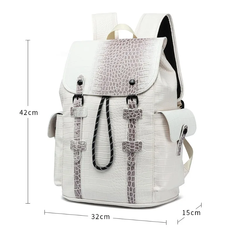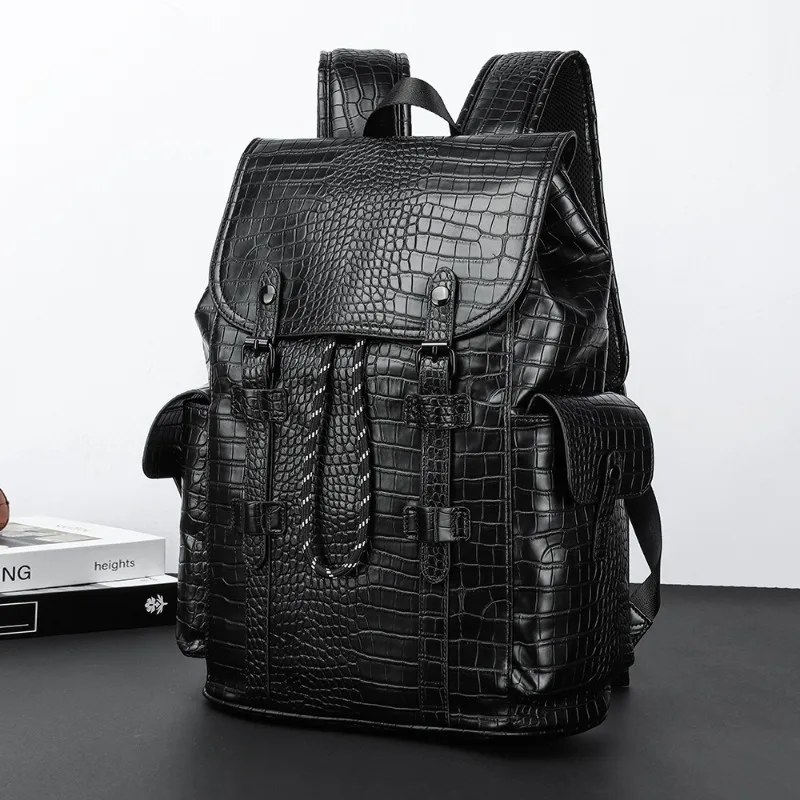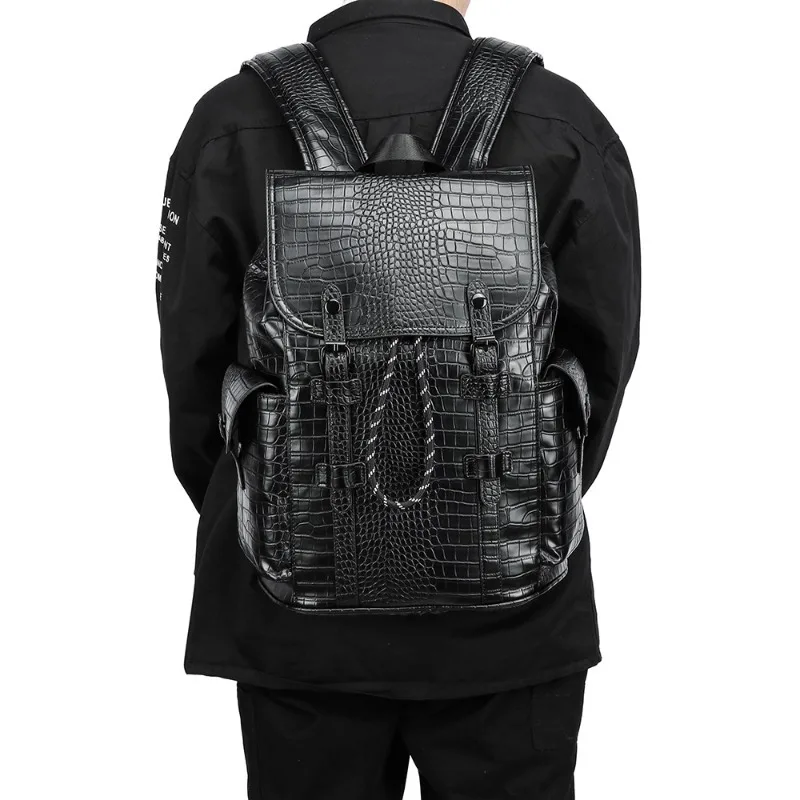 Matte Alligator Leather Backpack Men Large Capacity Men's Backpacks Business Travel Bag Anti-theft Flap Drawstring Laptop Bags