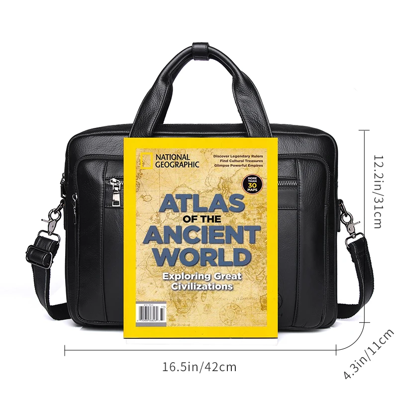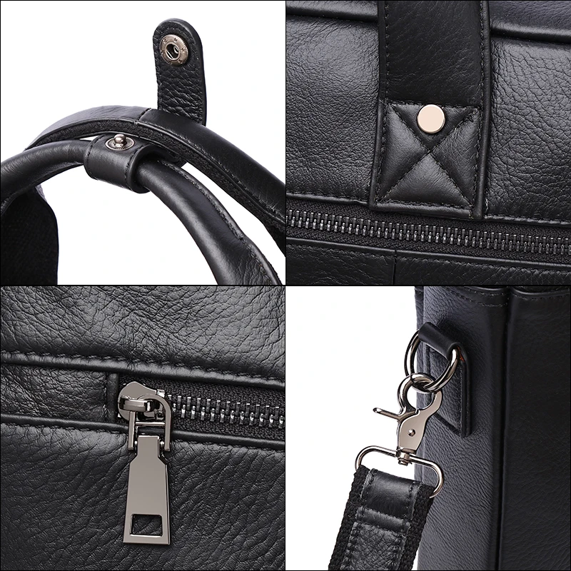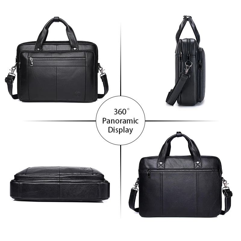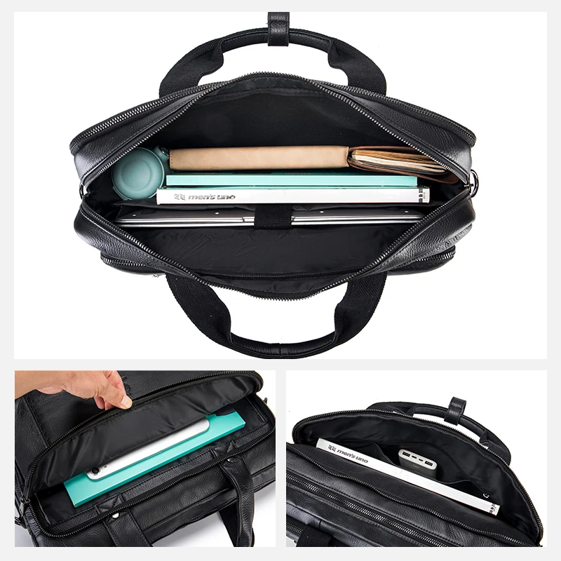 Men Genuine Leather Large Capacity Black Business Briefcase 16 Inch Laptop Office Computer Handbag