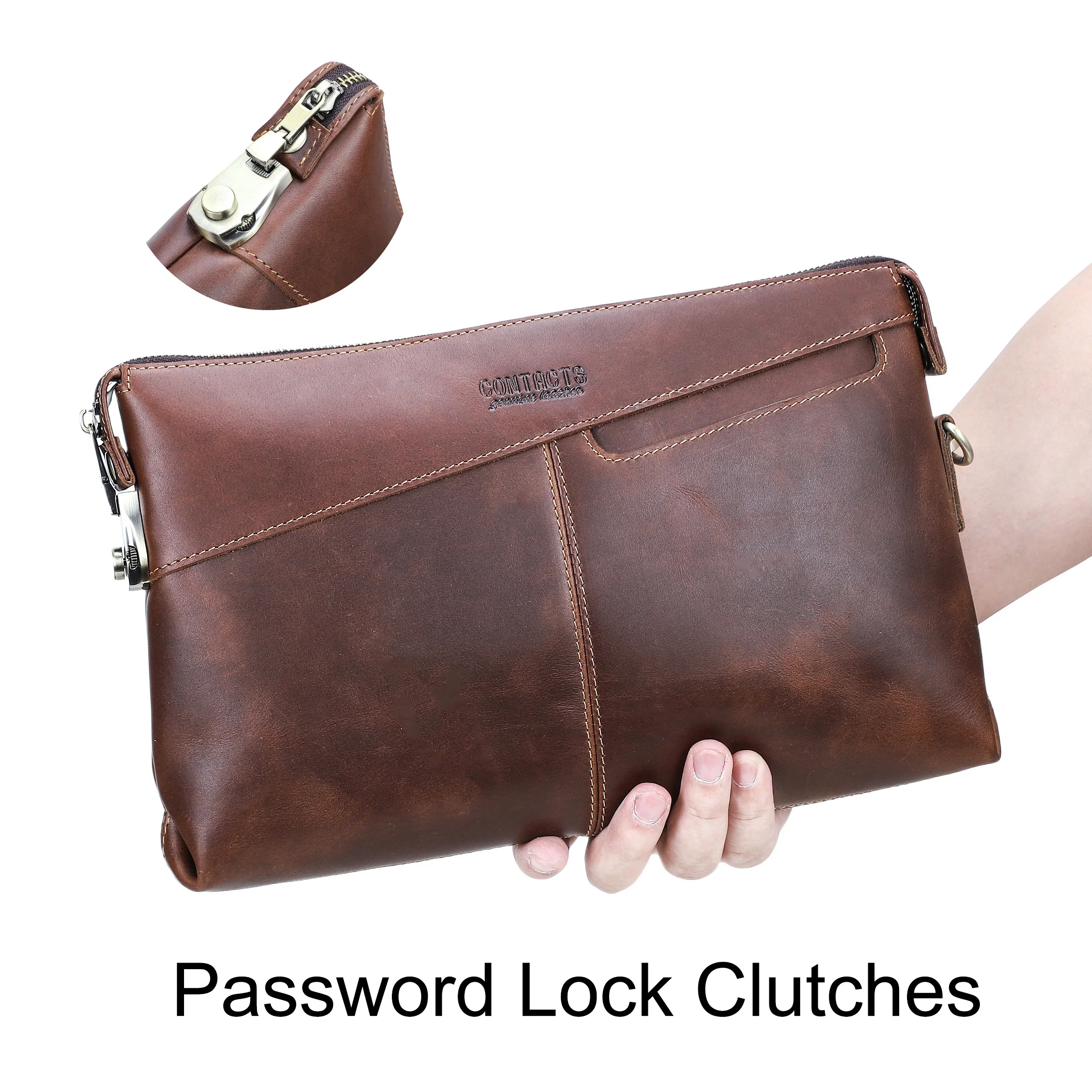 CONTACT'S Genuine Leather Clutch Bags for Men Password Lock Security Clutches Phone Pocket Men's Bag Handbag Male Cluth Wallet