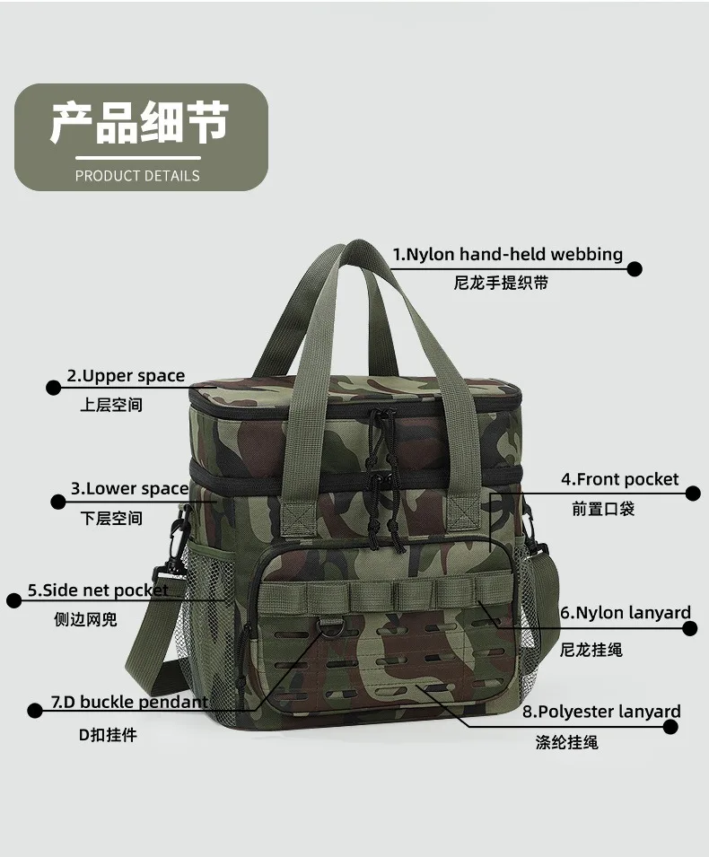 Picnic bag Outdoor camouflage fashion foreign style hot-selling lunch bag Large capacity fresh-keeping ice bag Oxford cloth lunc