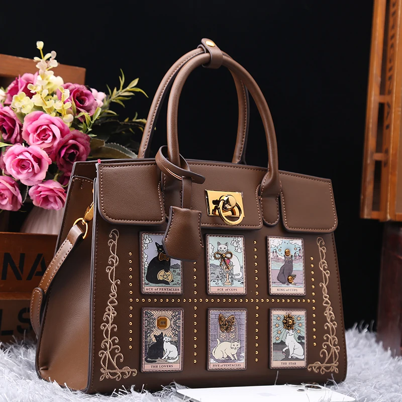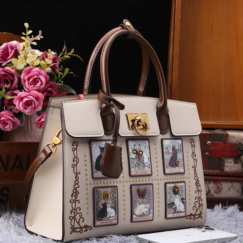 2025 High Luxury and Vintage Cartoon Cat Tote Bag with Delicate Embroidery Printing Women's Elegant and Fashion Shoulder Handbag