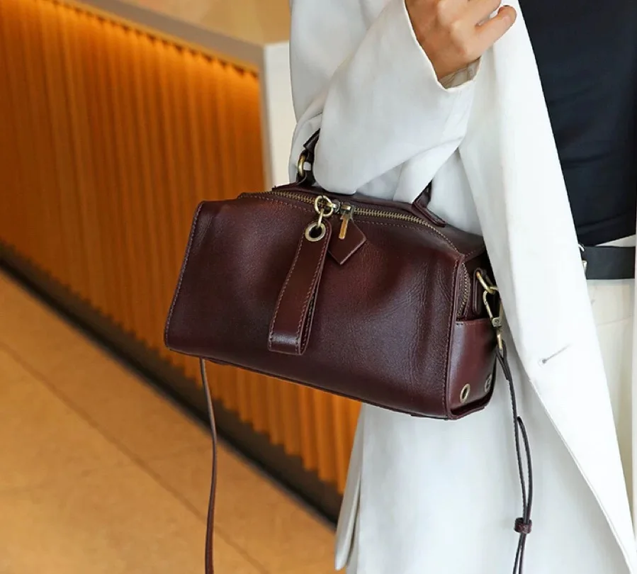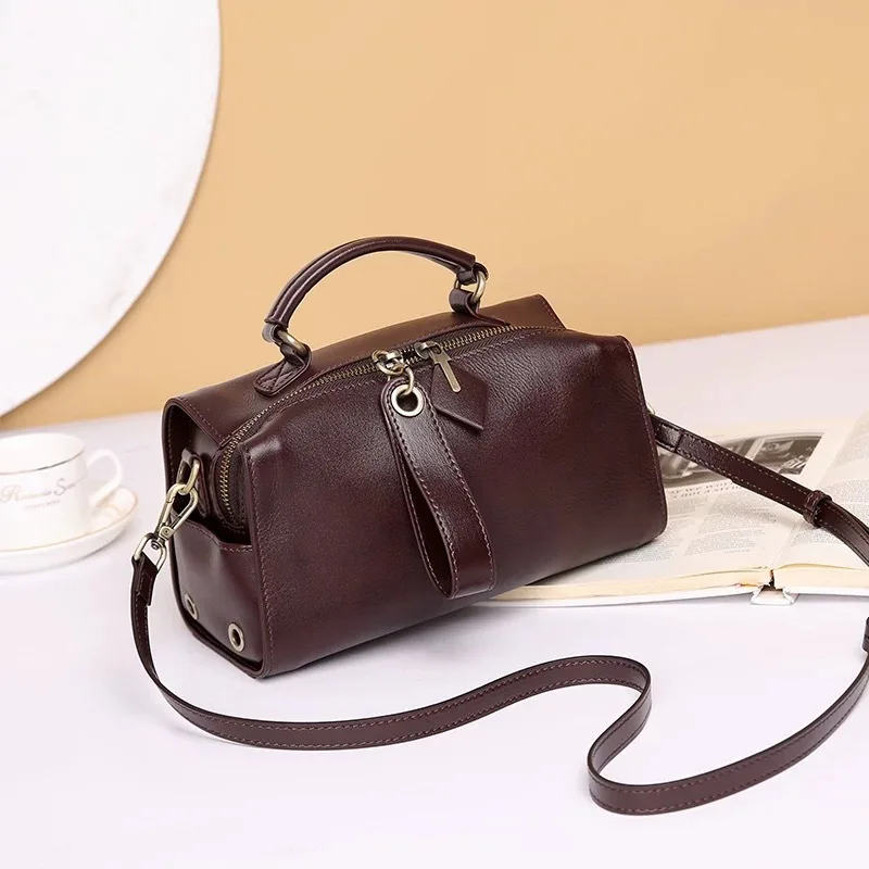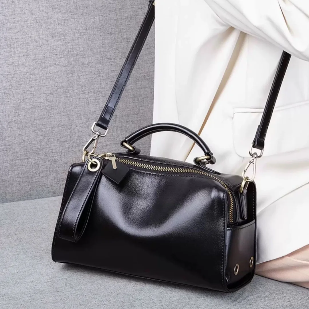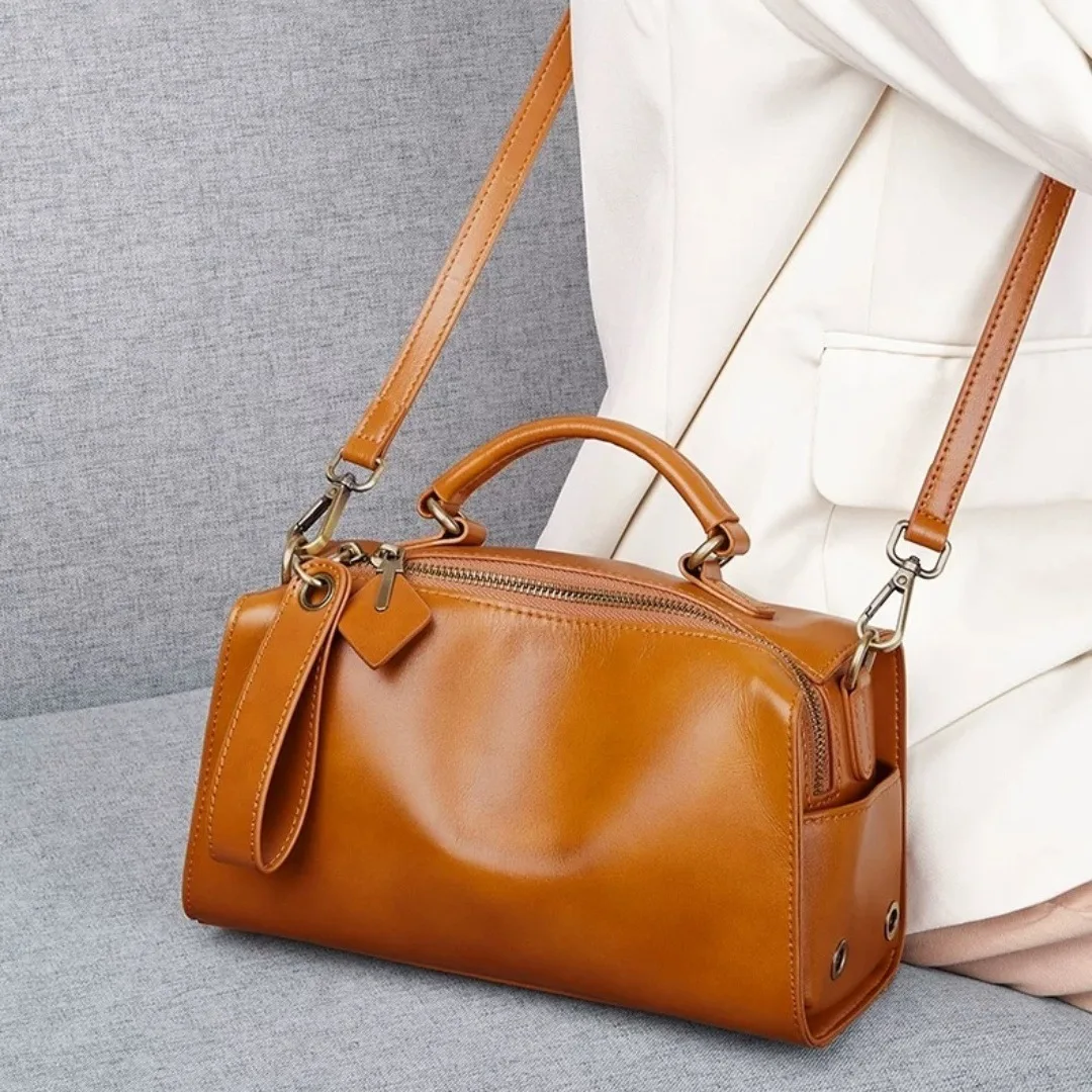 Casual Genuine Leather Tote Bag Women Small Real Oilwax Cow Leather Handbag Fashion Ladies Shoulder or Crossbody Bag