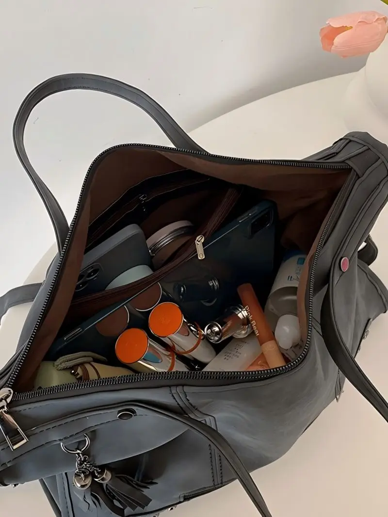 CGCBAG Vintage Designer Luxury Women Tote Bag Casual Lage Capacity Handbags Fashion Rivet Tassel PU Leather Female Shoulder Bag