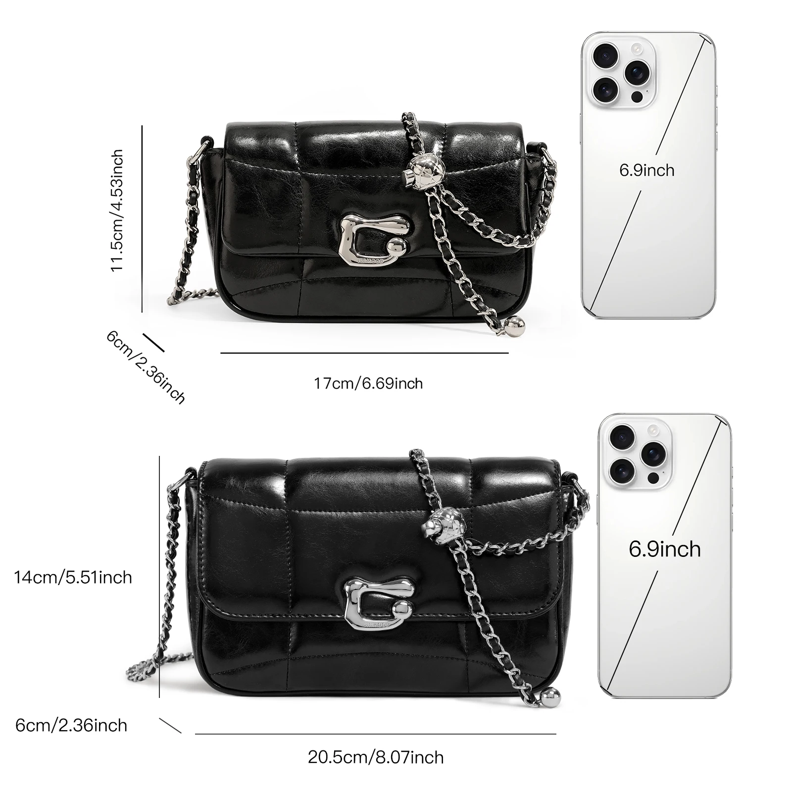 ITAMOOD Genuine Leather Retro Y2K Women's Leather Crossbody Bag Adjustable Chain Strap Multi-Size Hardware Lock Commuting Purse