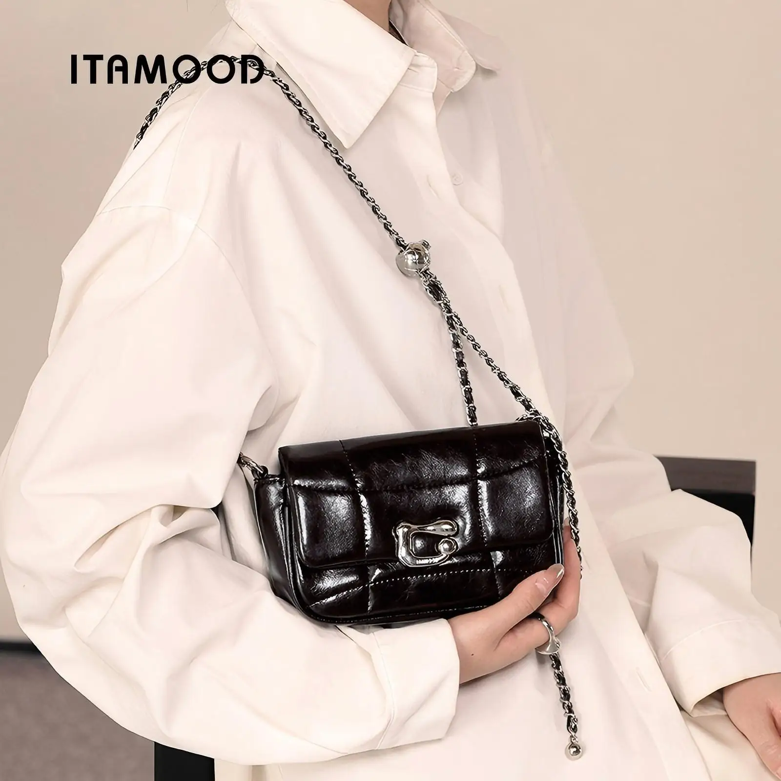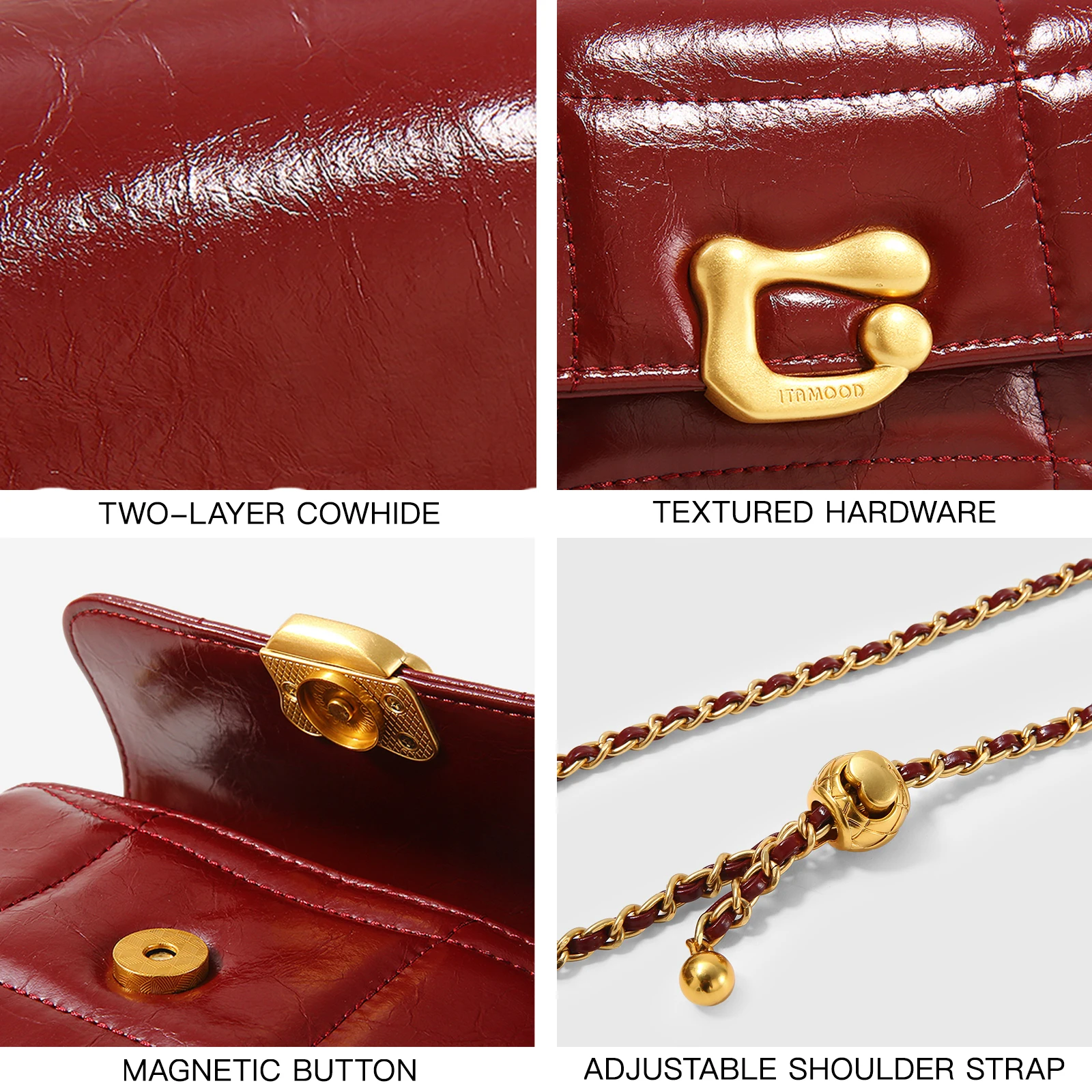 ITAMOOD Retro red y2k women's leather crossbody bag adjustable chain strap hardware lock commuting purse | bags for women
