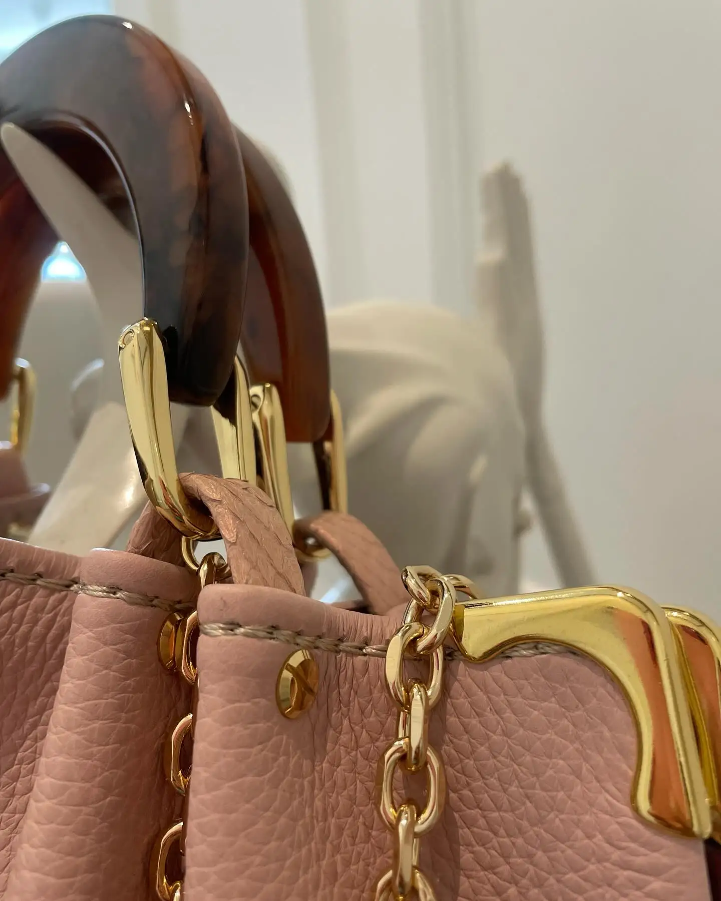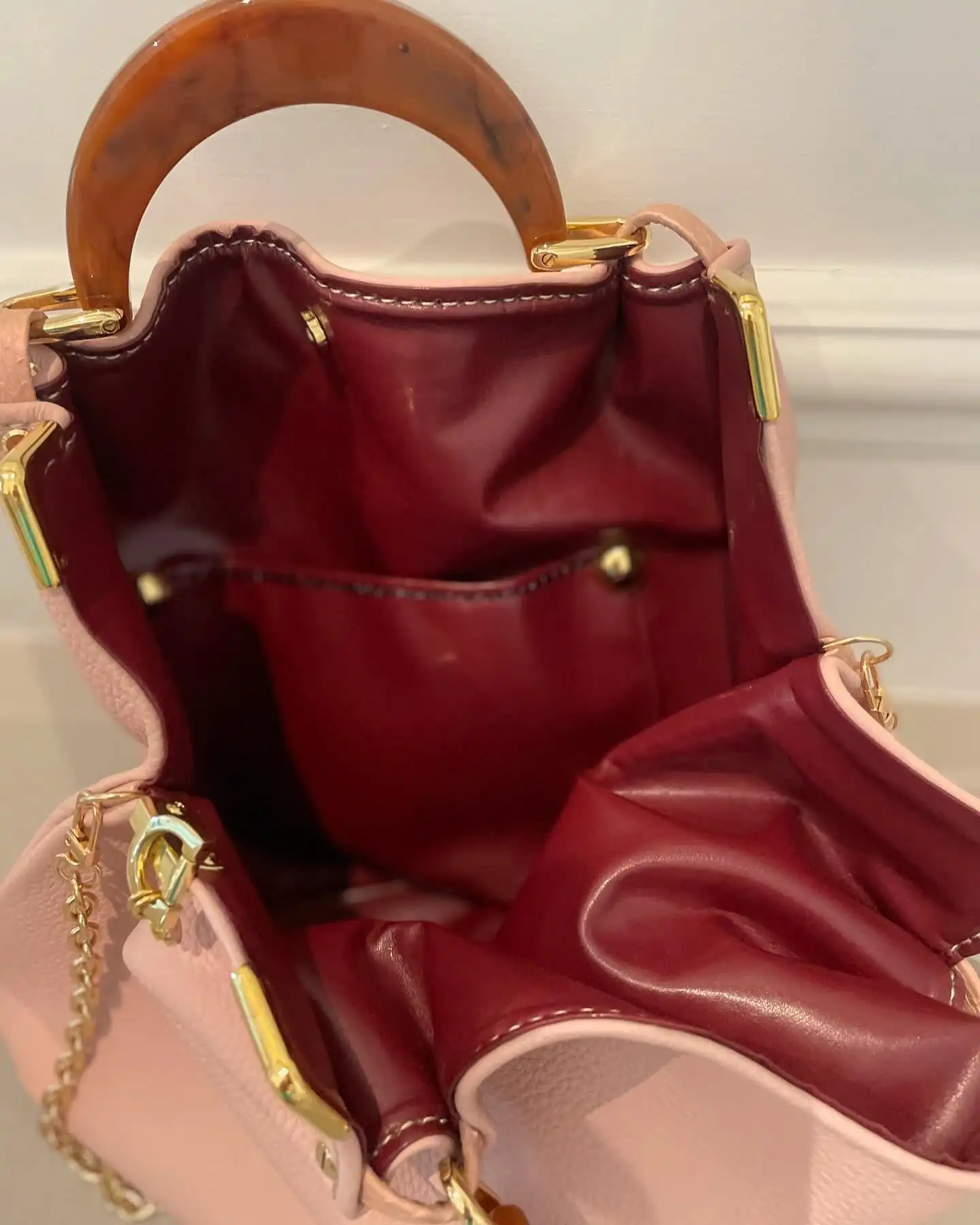 Lost in Vintage Details and Split Shoulder Strap Artificial Leather Bag with Double Handles in Turtle Metal Accessories Purse