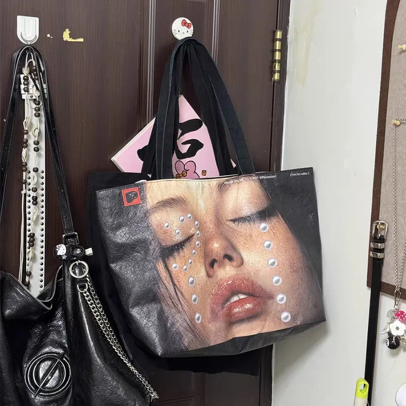 New Creative Women's Tote Bag Trend Face Printing Large Capacity Shoulder Bag Water Proof Hot Girl Handbag Large Shopping Bag