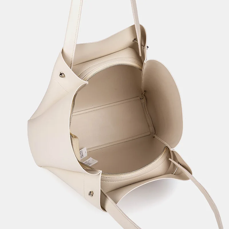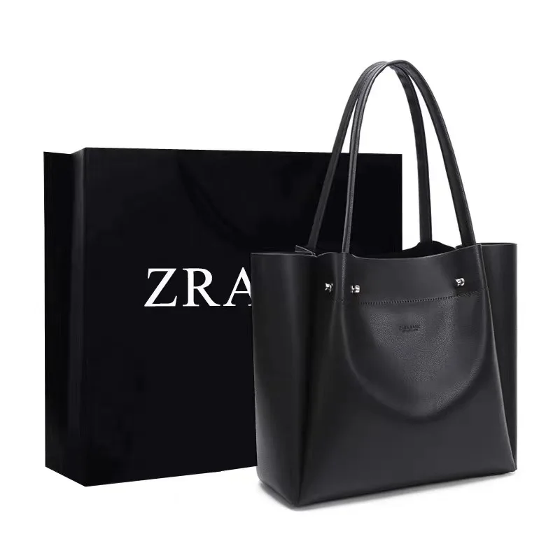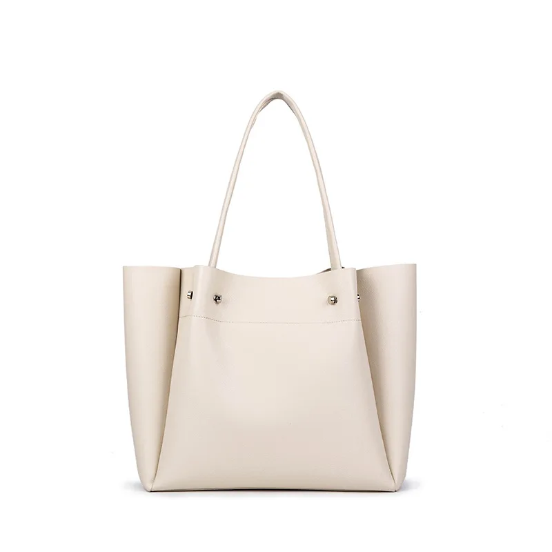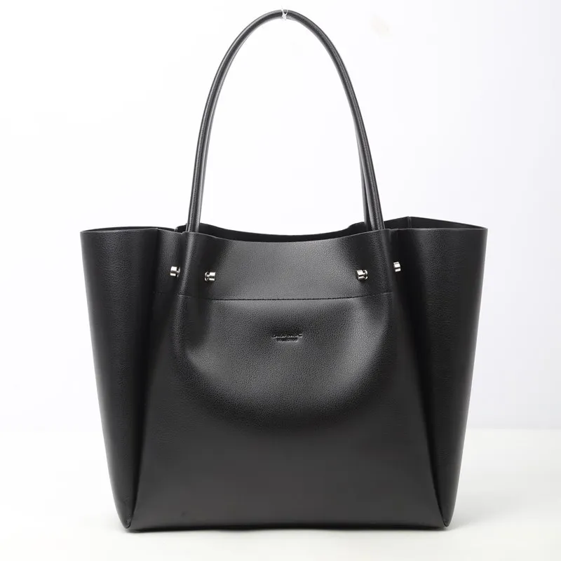 New large capacity soft leather shopping bag, one shoulder hand-held commuting tote bag