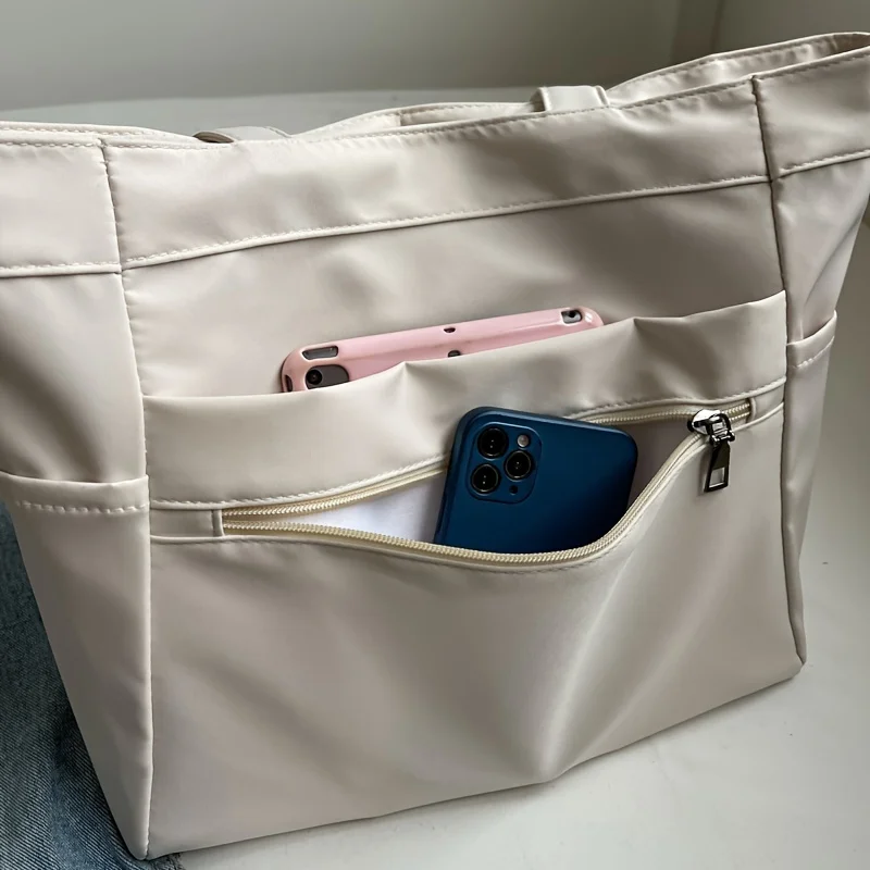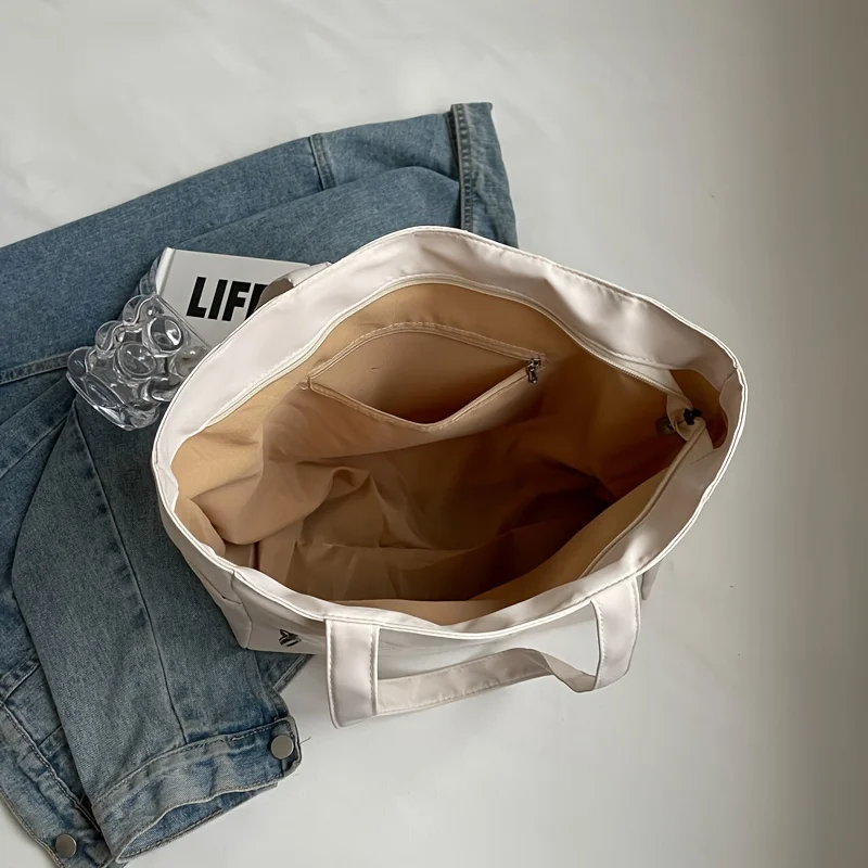 New Women's Shoulder Bag Large Capacity Multiple Pockets Handbag Simple Canvas Tote Bag Daily Commuting