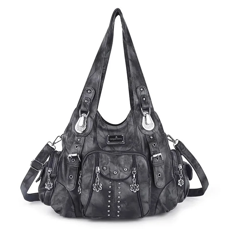 Women Bag Angel kiss Large Handbags Satchel Top-handle PU Shoulder Bag Vintage Dumpling Pack Multi-pockets Shoulder Bags