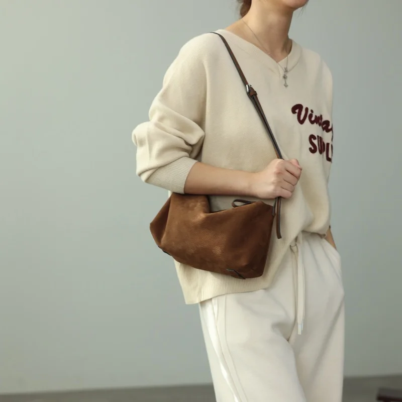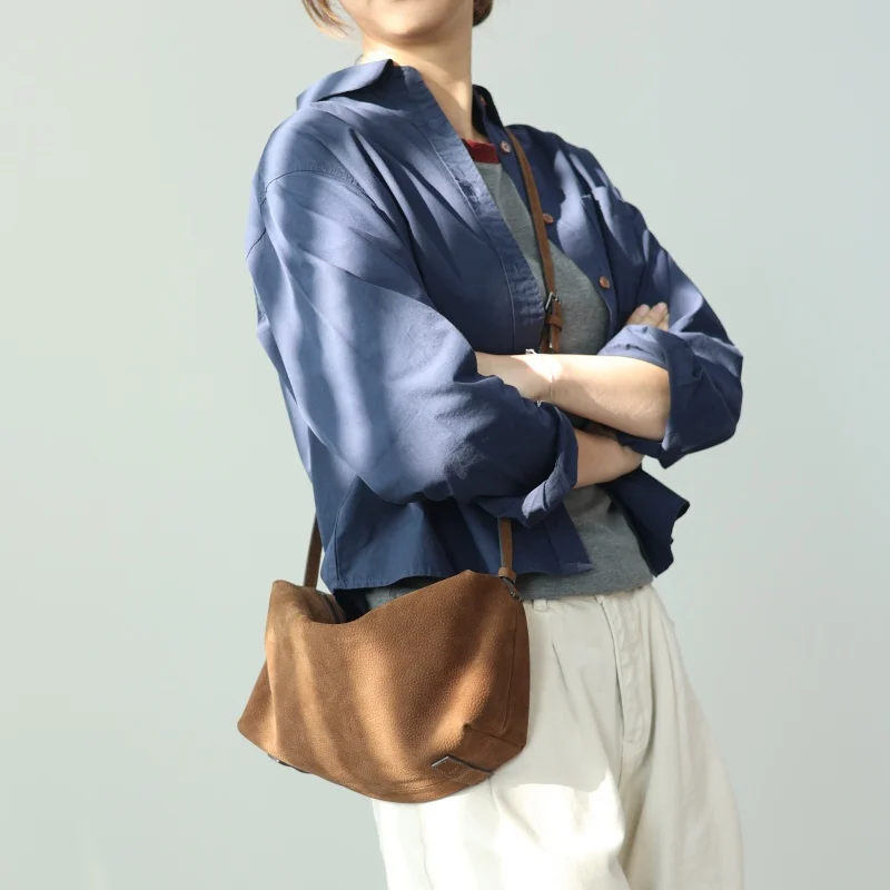 Women Genuine Leather Vintage Zipper Crossbody Bags Versatile Luxury Shoulder Bag With Adjustable Shoudler Strap Soft Handbag