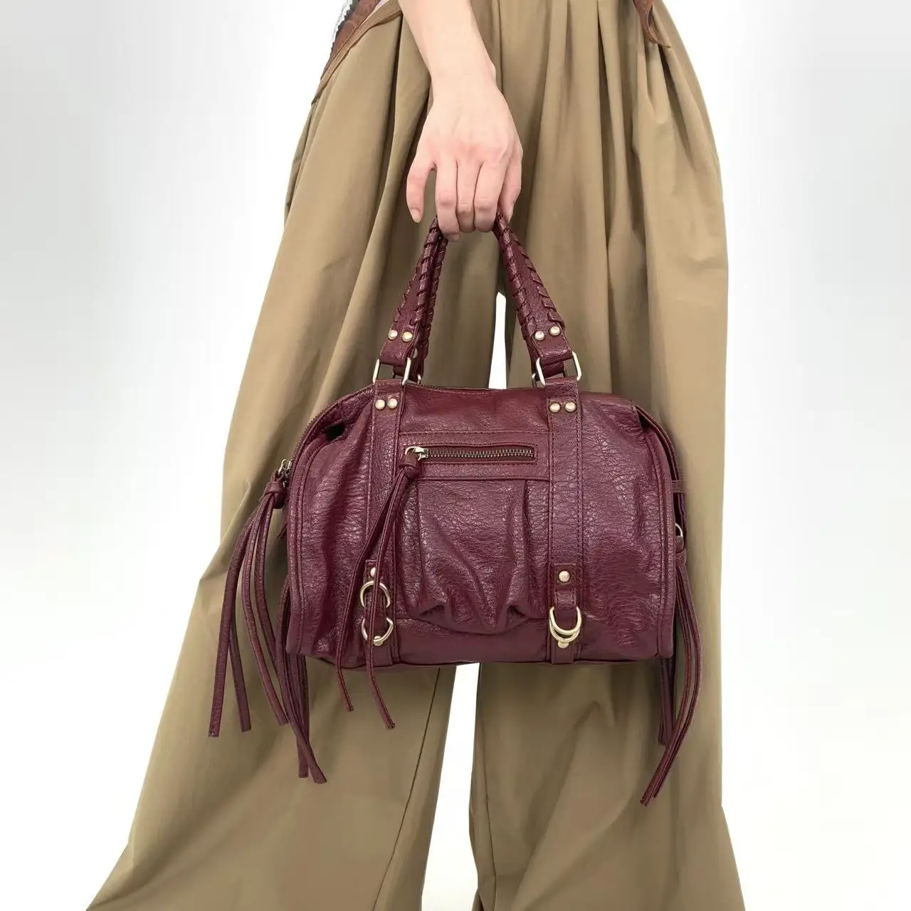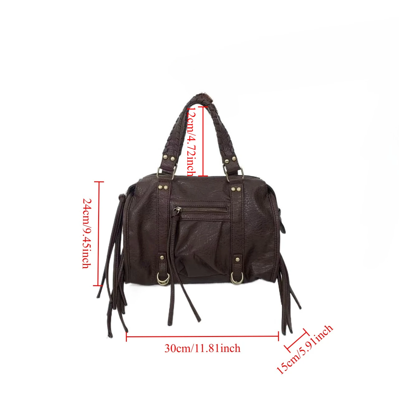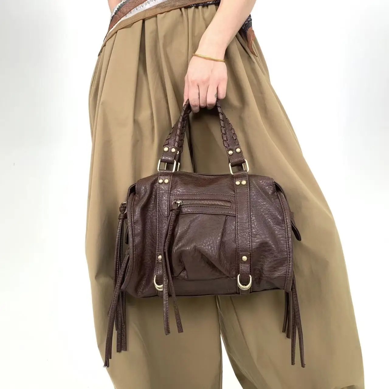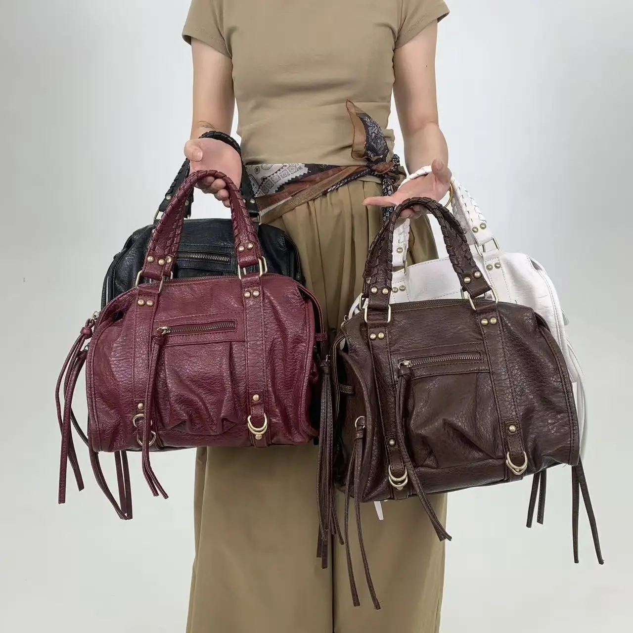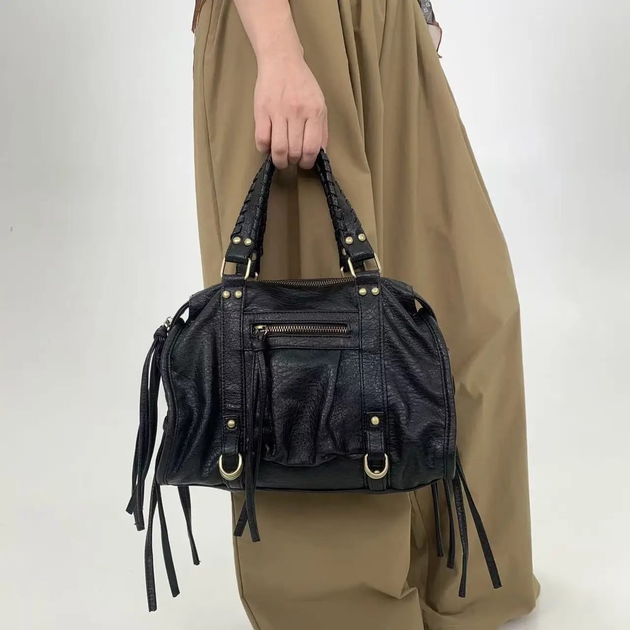 Y2K women's street style personalized rivet made old shoulder bag, retro motorcycle tote bag