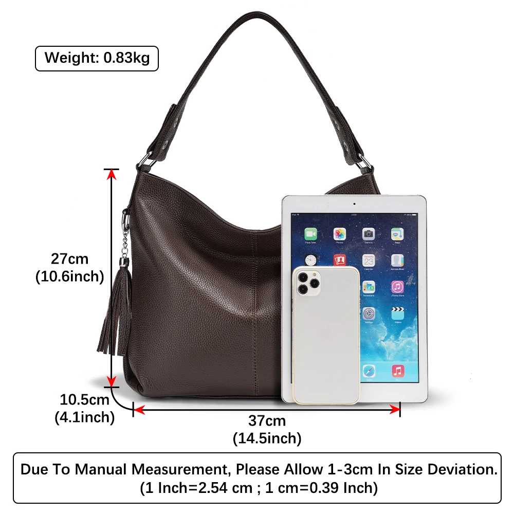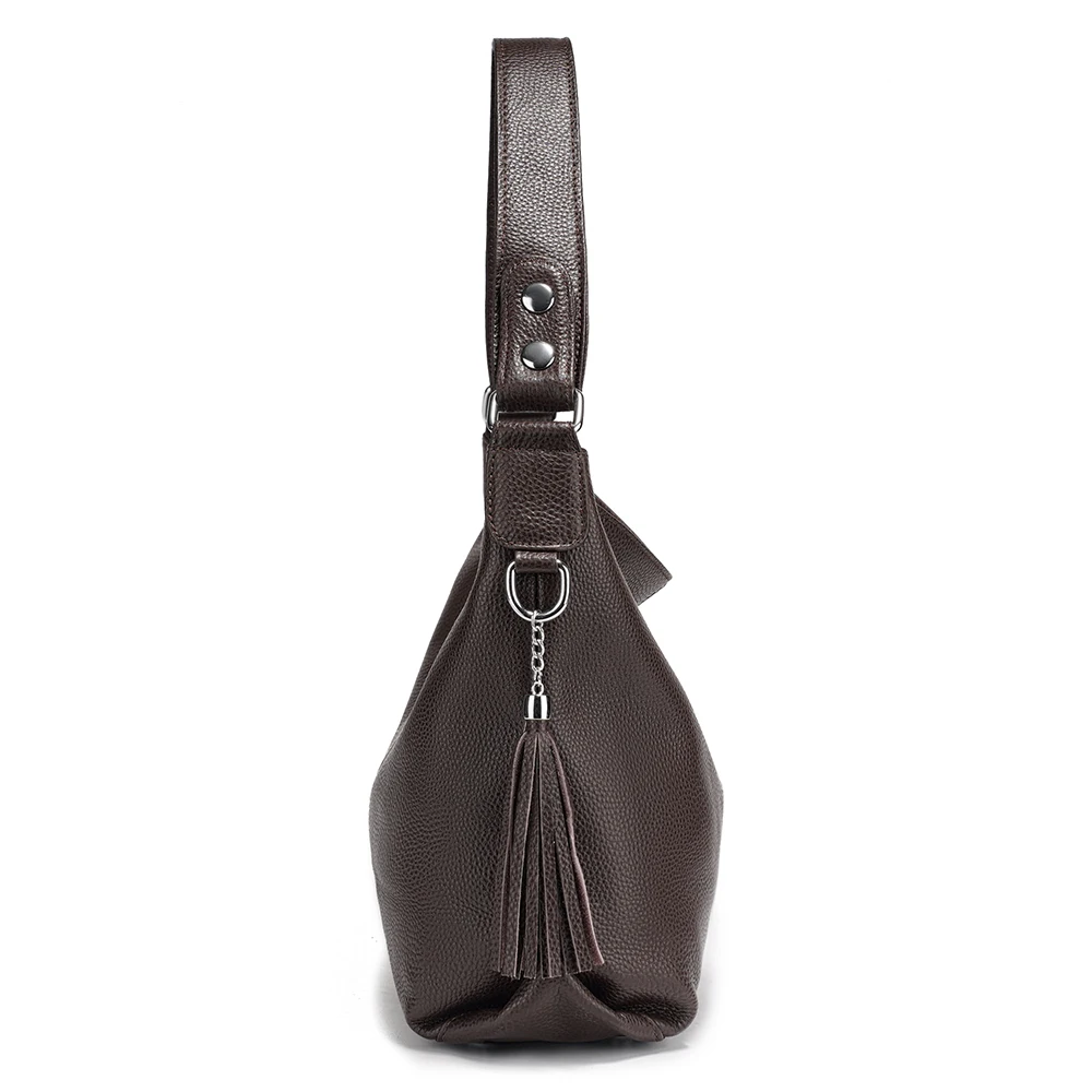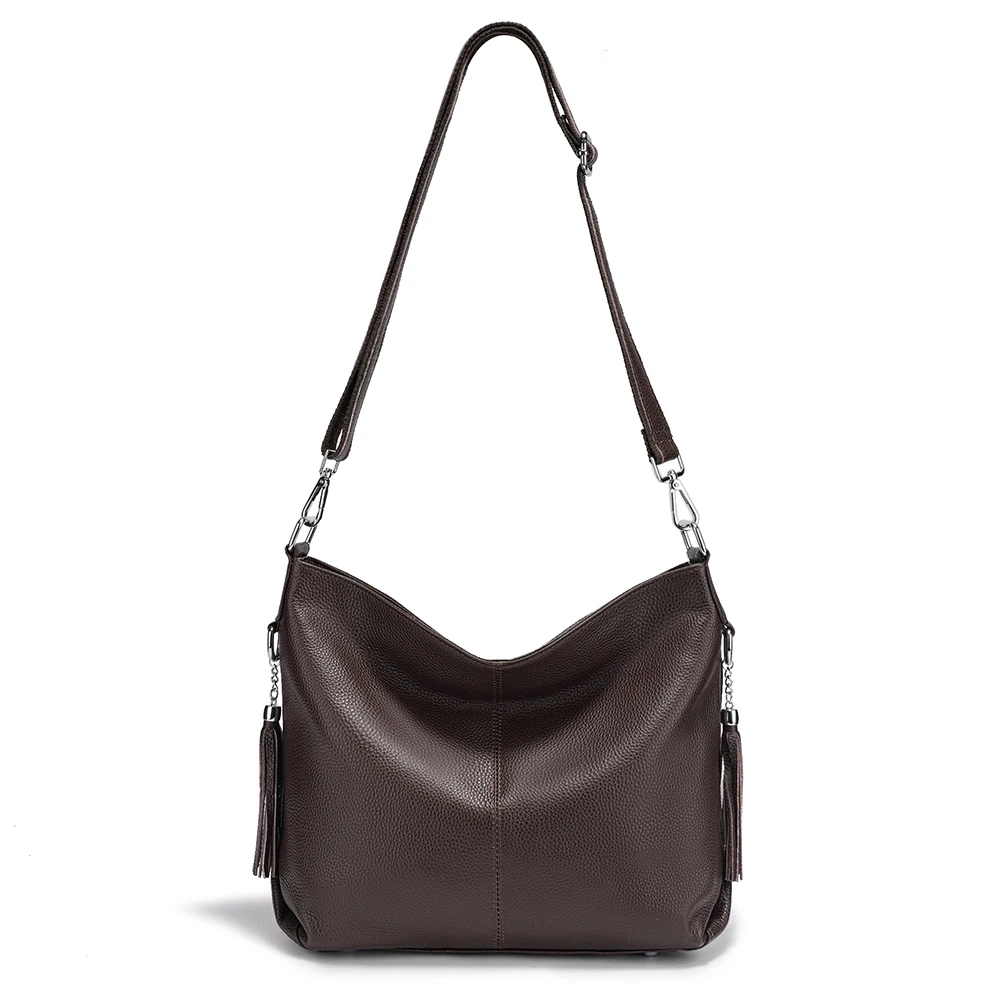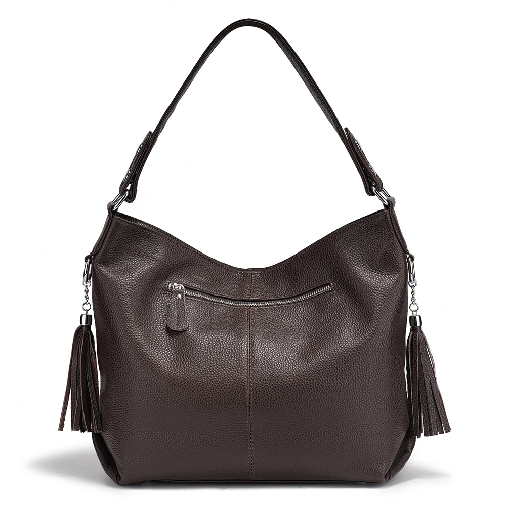 Zency Fashion Soft Coffee Genuine Leather Women's Handbag with Tassel Ladies Shoulder Elegant Large Capacity Hobo Bag Satchel