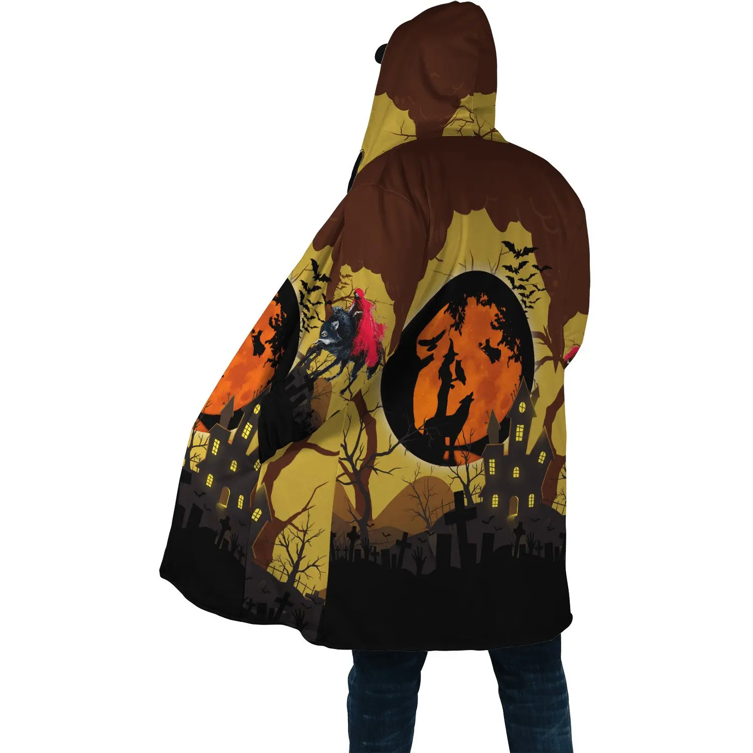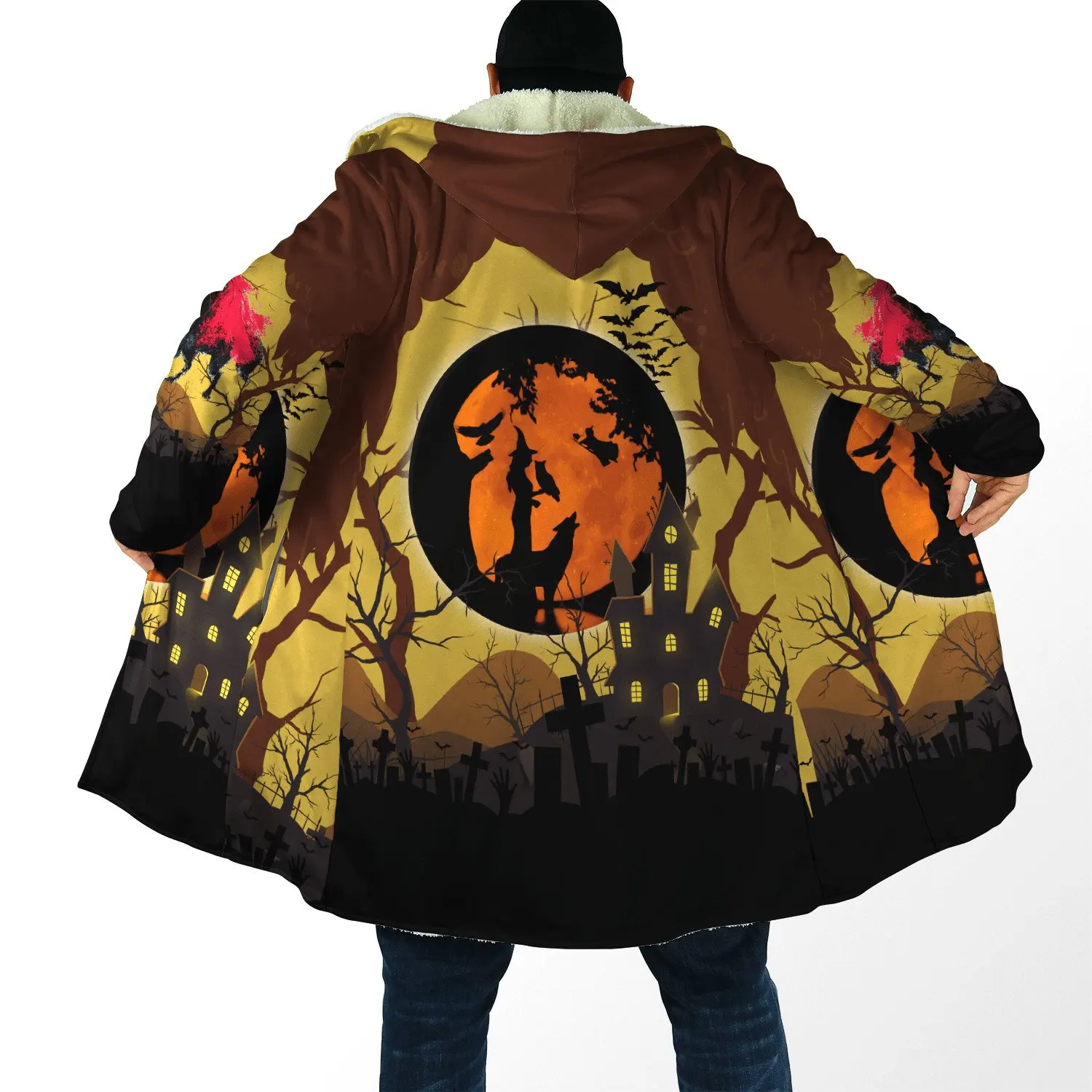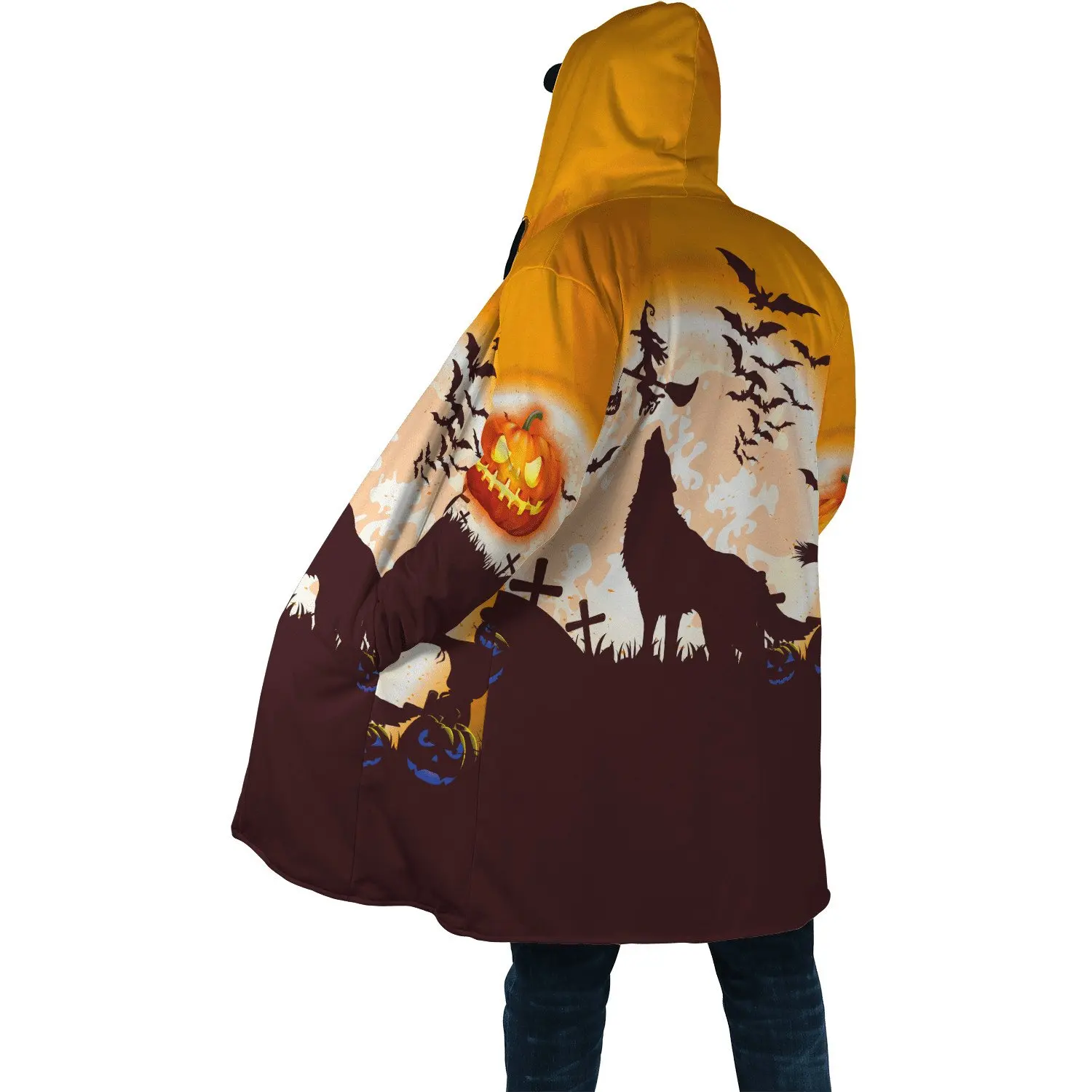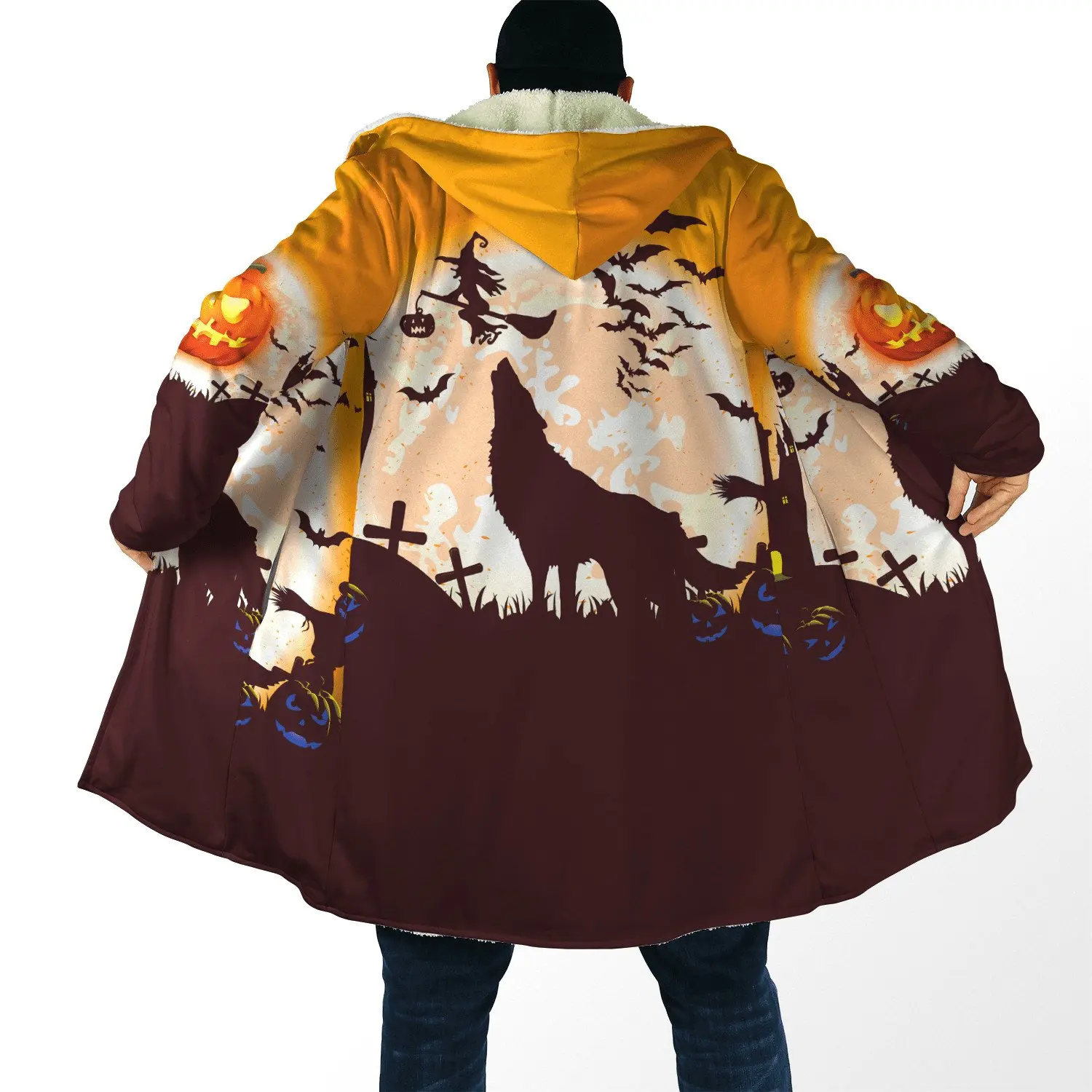 2024 Winter Fashion Mens Cloak Halloween Wolf pumpkin 3D Printing Fleece Hooded cloak Unisex Casual Thick Warm Cape coat PJ-03