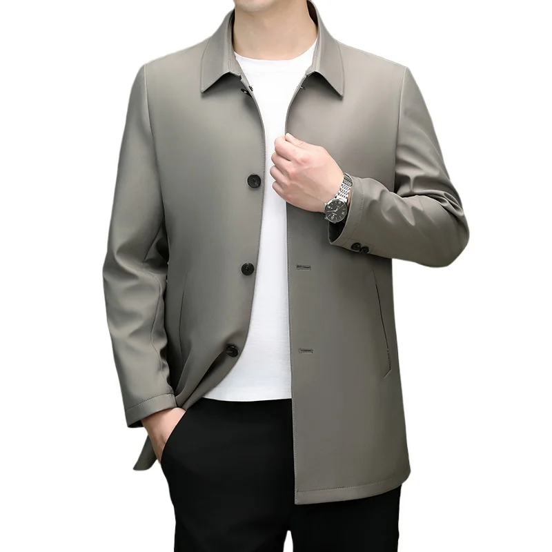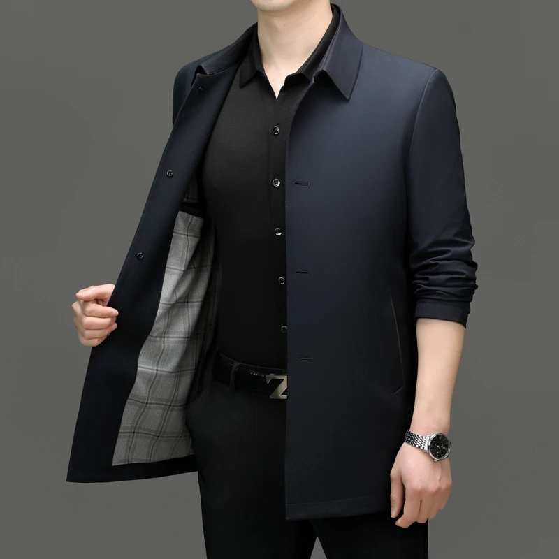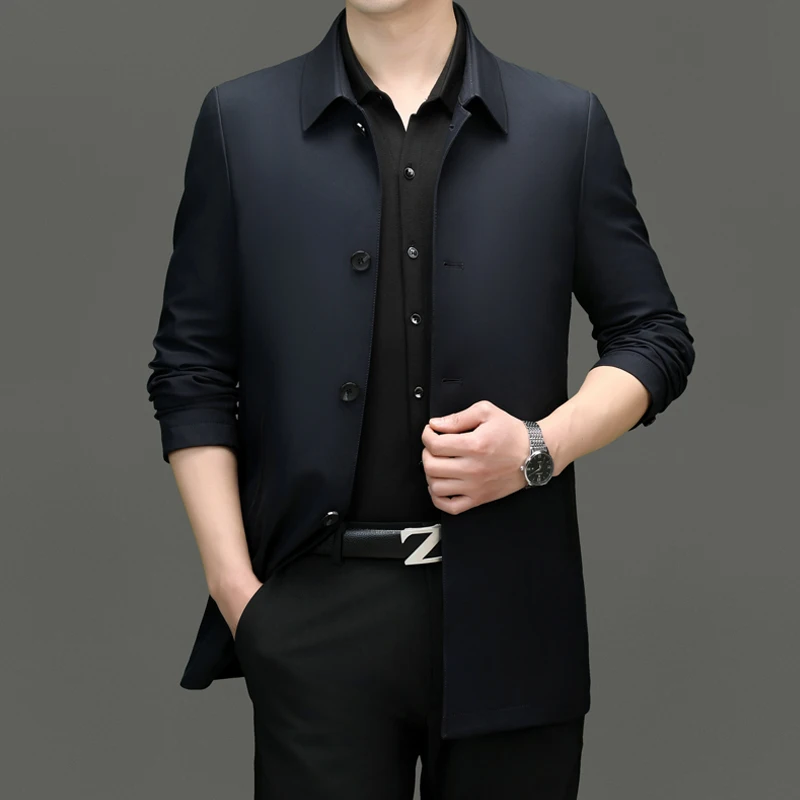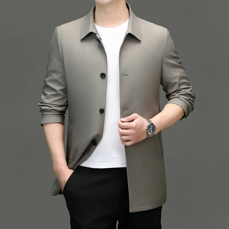 2025 Men's Trench Coat Long Fashion Handsome with Solid Color High-end Fabric Lapel Business Casual Coat Young People Jackets