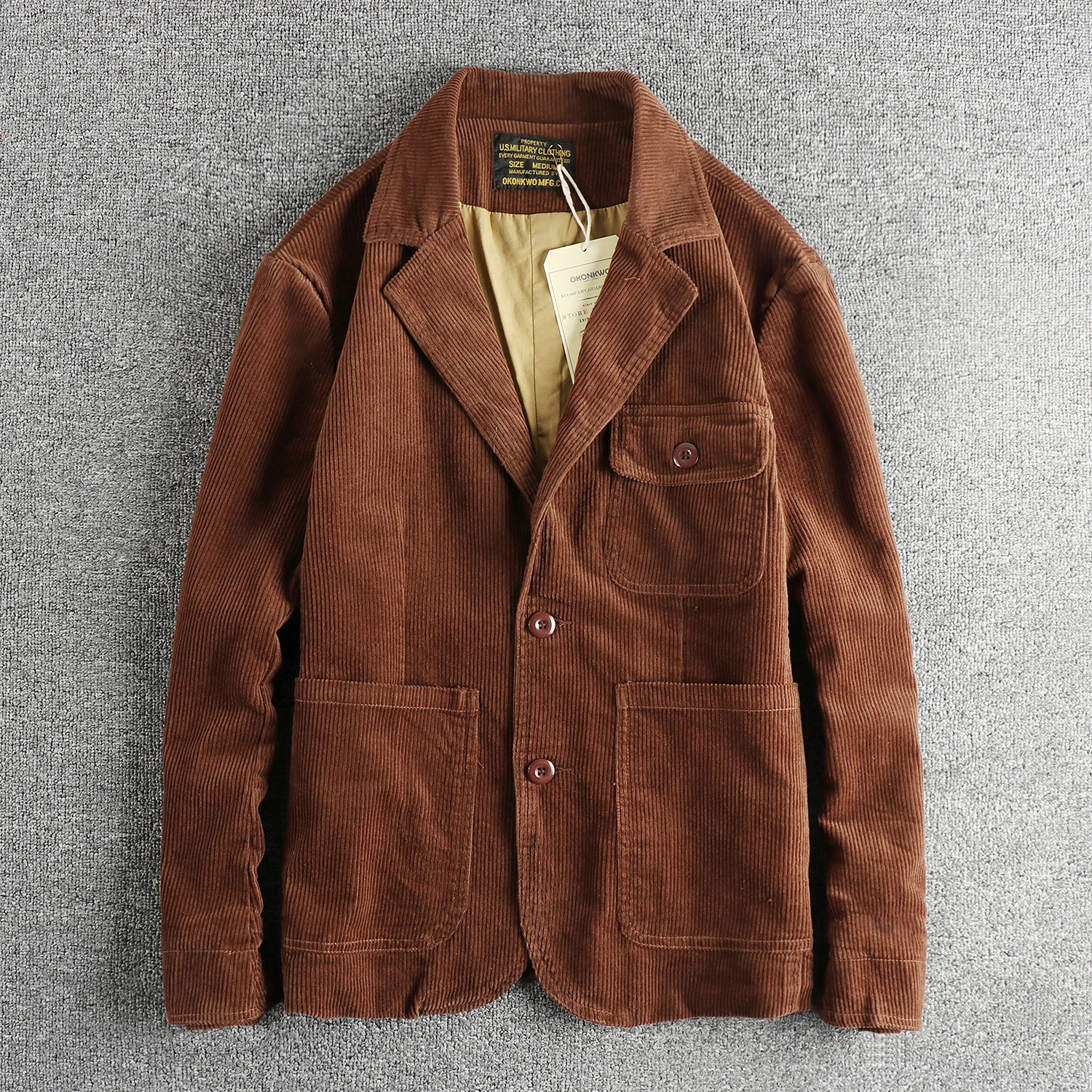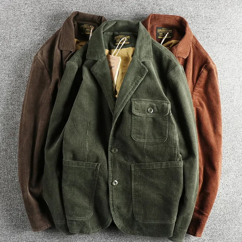 Heavy May Khaki vintage washed cotton corduroy casual suit men's fashion loose jacket single suit