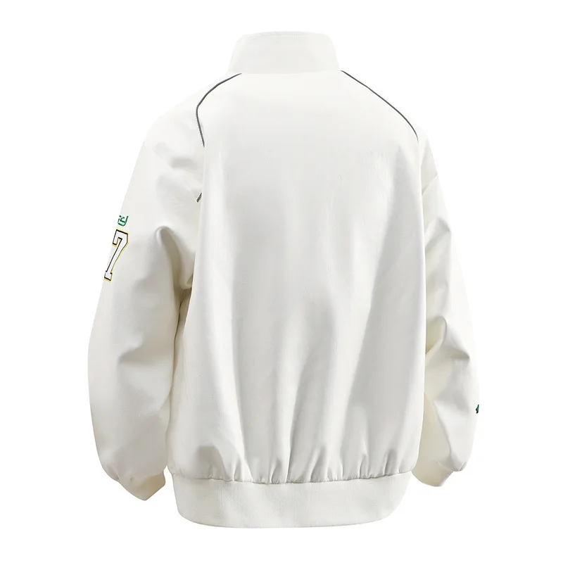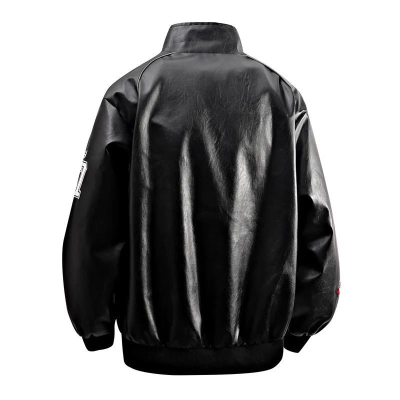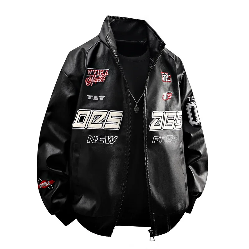 Men Leather Jacket Spring Autumn High Street Letter Printed Stand Collar Jacket Men Motorcycle Long Sleeve Outerwear Coat Men
