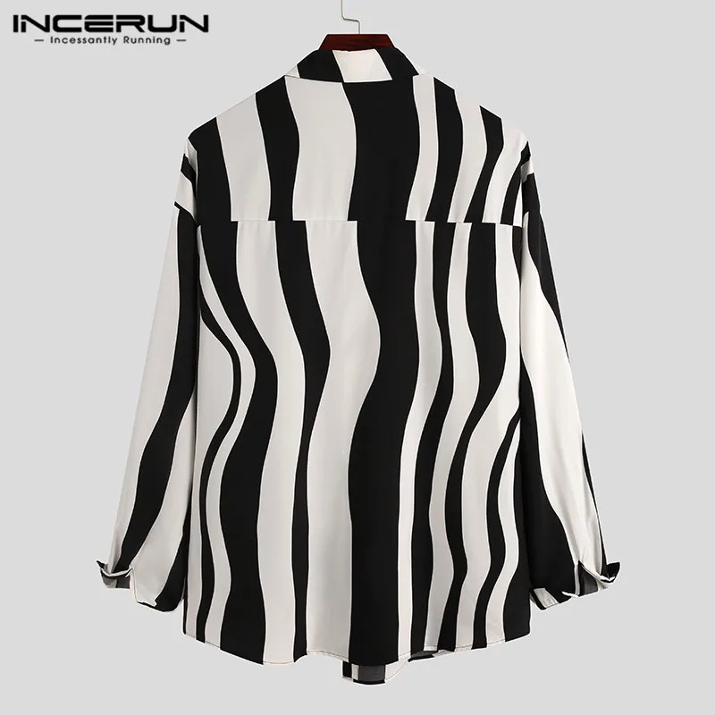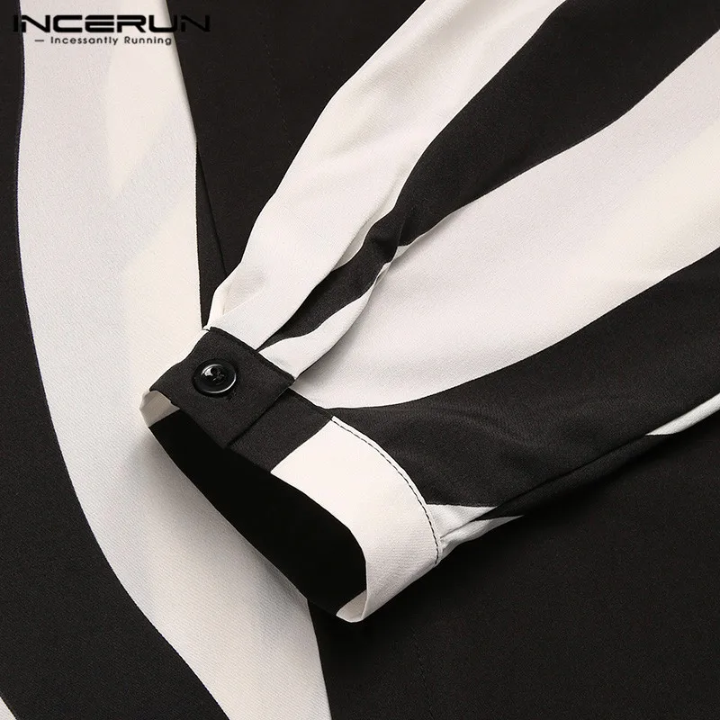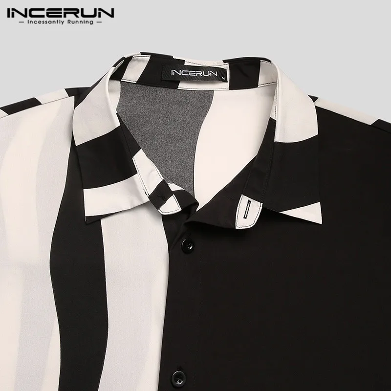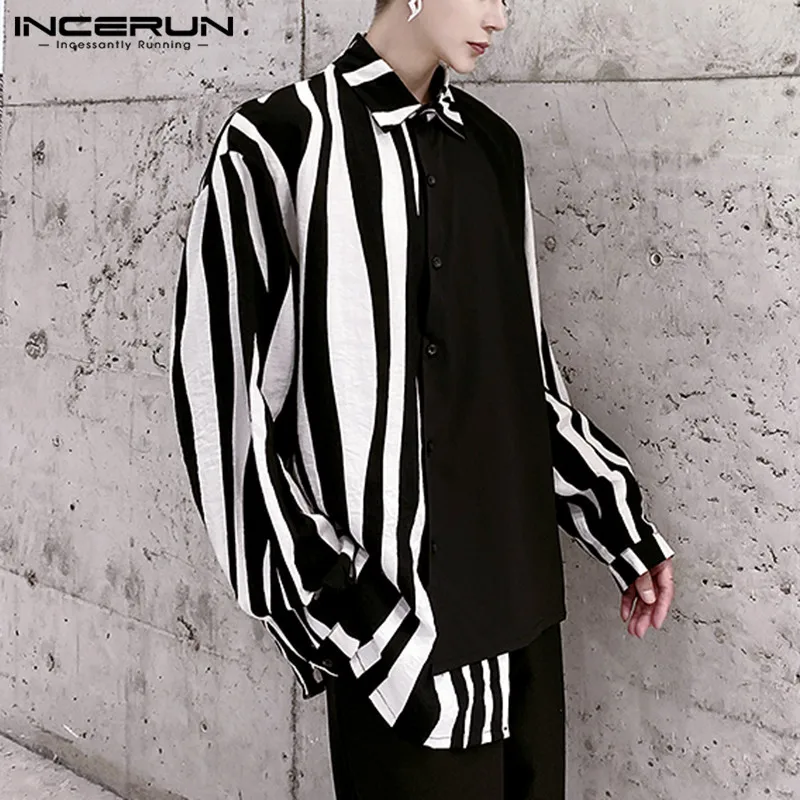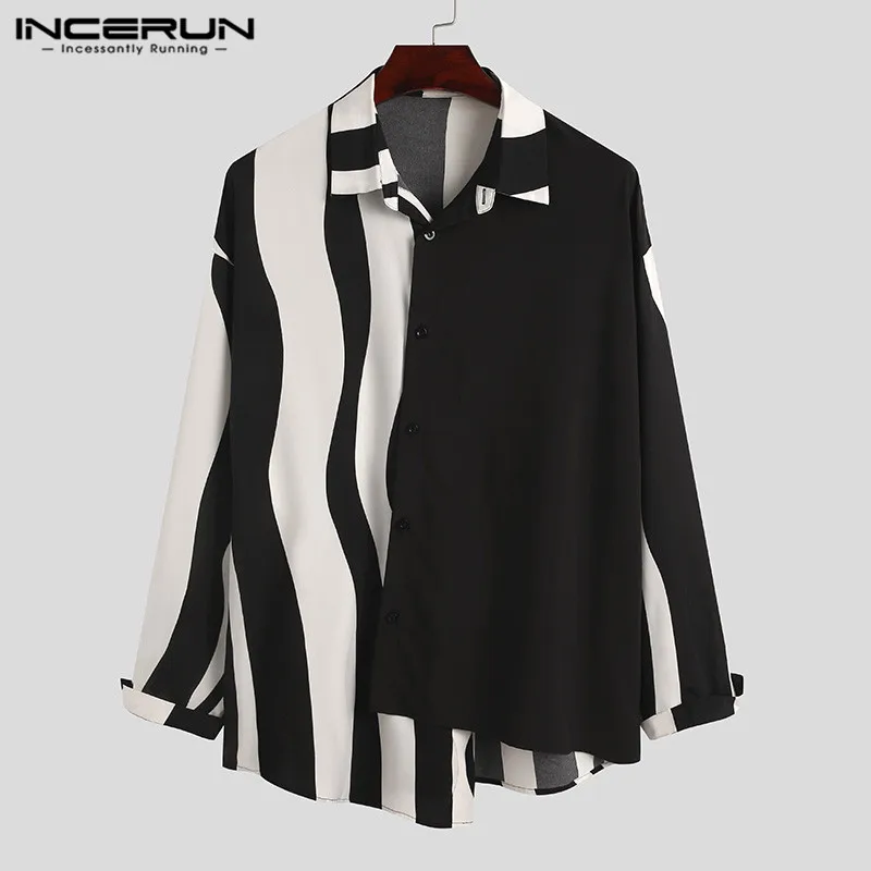 2026 Men Striped Patchwork Shirts Brand Streetwear Lapel Tops Fashion Irregular Shirts Long Sleeve Casual Camisas S-5XL INCERUN