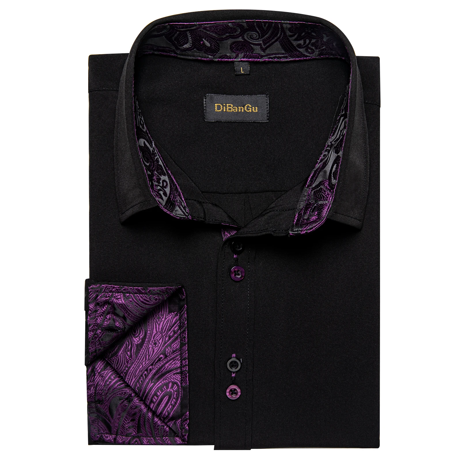 Men's Casual Long Sleeve Shirt with Inner Paisley Contrast Pattern Elegant Turn Down Collar Dress Shirt for Business Date Tops
